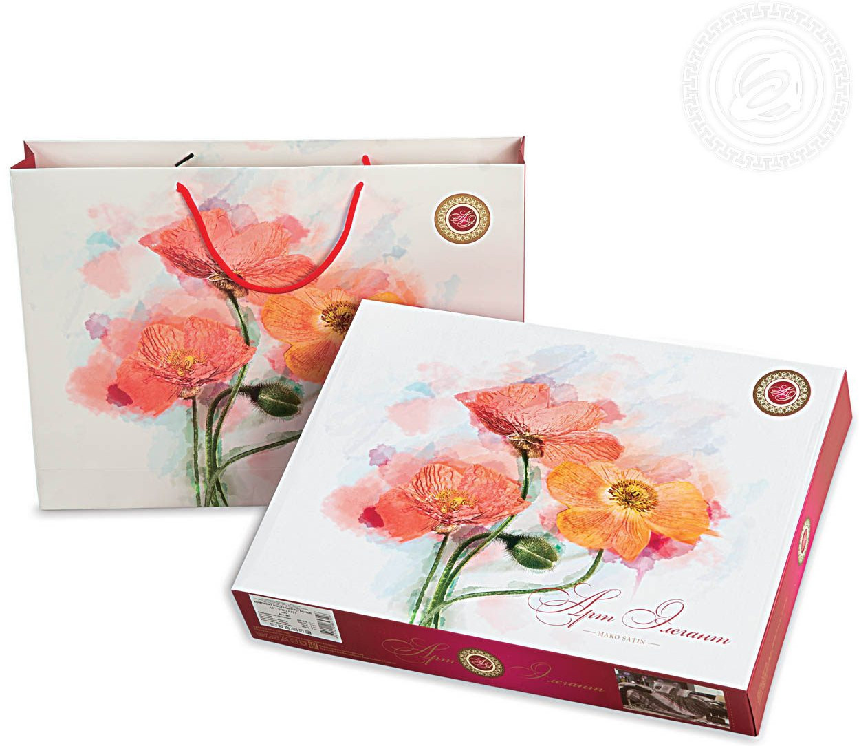 Особое внимание уделено пошиву комплектов. В составе постельного белья наволочки и пододеяльник на молнии. Наволочки украшены ушками, пододеяльник — декоративной отстрочкой. Для удобства и легкости застилки одеяла, молния пододеяльника увеличена в длину и оснащена двумя замочками. Дизайны, представленные в коллекции, изящны и изысканны. Они хорошо подходят для разных интерьерных стилей и придают особый шарм окружающему пространству. Рисунки в мако-сатине остаются яркими, так как для ткани используется активный способ крашения. Активные красители, используемые при окрашивании ткани, безопасны и безвредны. Постельное белье из мако-сатина упаковано в подарочную коробку, которая дополняет эксклюзивную линейку постельного белья и подчеркивает ее лимитированный статус.