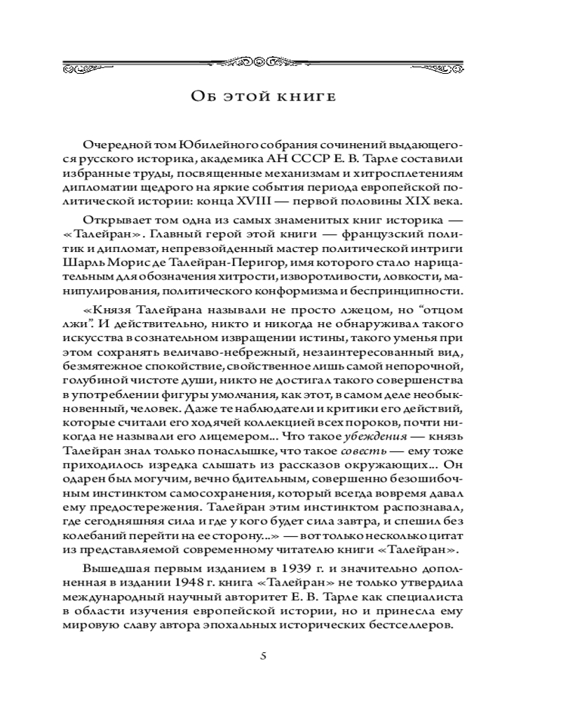 Серия: Подарочные издания. Юбилейное собрание сочинений академика Е. В. Тарле Это коллекционное издание продолжает собрание сочинений известного советского историка, академика Евгения Викторовича Тарле (1874-1955). Блестящий педагог, он обладал незаурядным для ученого литературным талантом, оставаясь при этом авторитетнейшим специалистом в российской исторической науке, всецело преданным исторической правде. Популяризаторский стиль, живой язык и повествовательный динамизм в сочетании со строгим, педантичным следованием фактам ставят его работы в один ряд с трудами великого Н. М. Карамзина, В. О. Ключевского, Н. И. Костомарова. |