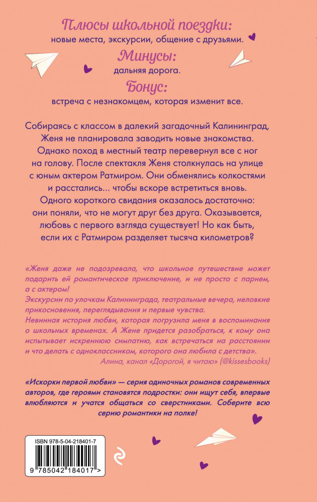 Серия: Искорки первой любви. Романтические истории для девушек Плюсы школьной поездки: новые места, экскурсии, общение с друзьями. |
