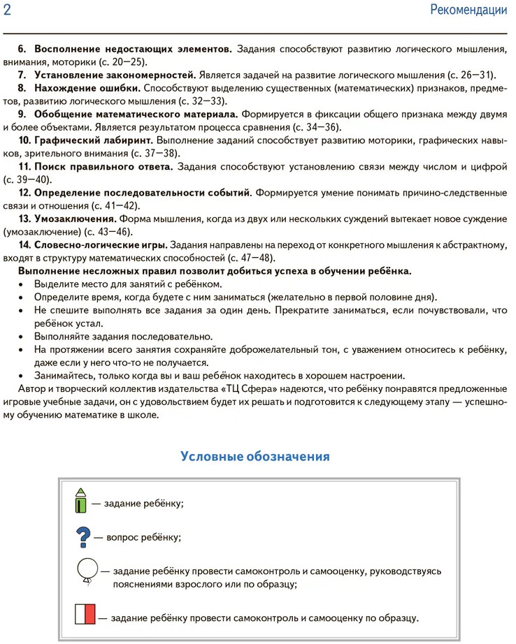 Серия: Математические ступеньки Погрузитесь в увлекательный мир логики и мышления с тетрадью «Я решаю логические задачи»! Это уникальное издание создано для того, чтобы развивать у детей 6–7 лет важнейшие навыки, необходимые для успешного обучения и жизни. В тетради собраны разнообразные задания, которые не только увлекут вашего ребенка, но и помогут ему стать более внимательным, самостоятельным и любознательным. Тетрадь включает в себя задания на развитие произвольного внимания, концентрации, анализа и синтеза предметов сложной формы, а также словесно-логические игры. Каждый раздел предлагает новые вызовы и возможности для обучения. Выполнение заданий побуждает ребенка к активному мышлению, что способствует развитию его аналитических способностей и логического мышления. В конце книги предусмотрен специальный клапан, который позволяет ребенку самостоятельно оценить свою работу по зрительному образцу. Это важный шаг к формированию навыков саморегуляции и ответственности. Издание входит в дополнительный комплект организационно-методического сопровождения технологии «Математические ступеньки», что делает его идеальным инструментом для совместной работы взрослого с ребенком. Задания способствуют формированию умений сравнивать, обобщать, анализировать и делать простейшие умозаключения, что является основой для успешного обучения в школе. Тетрадь рекомендована широкому кругу специалистов, работающих в дошкольных образовательных организациях, и может быть использована родителями при подготовке к школе. Увлекательные задания и игры помогут ребенку не только учиться, но и получать удовольствие от процесса, развивая его интерес к обучению. |