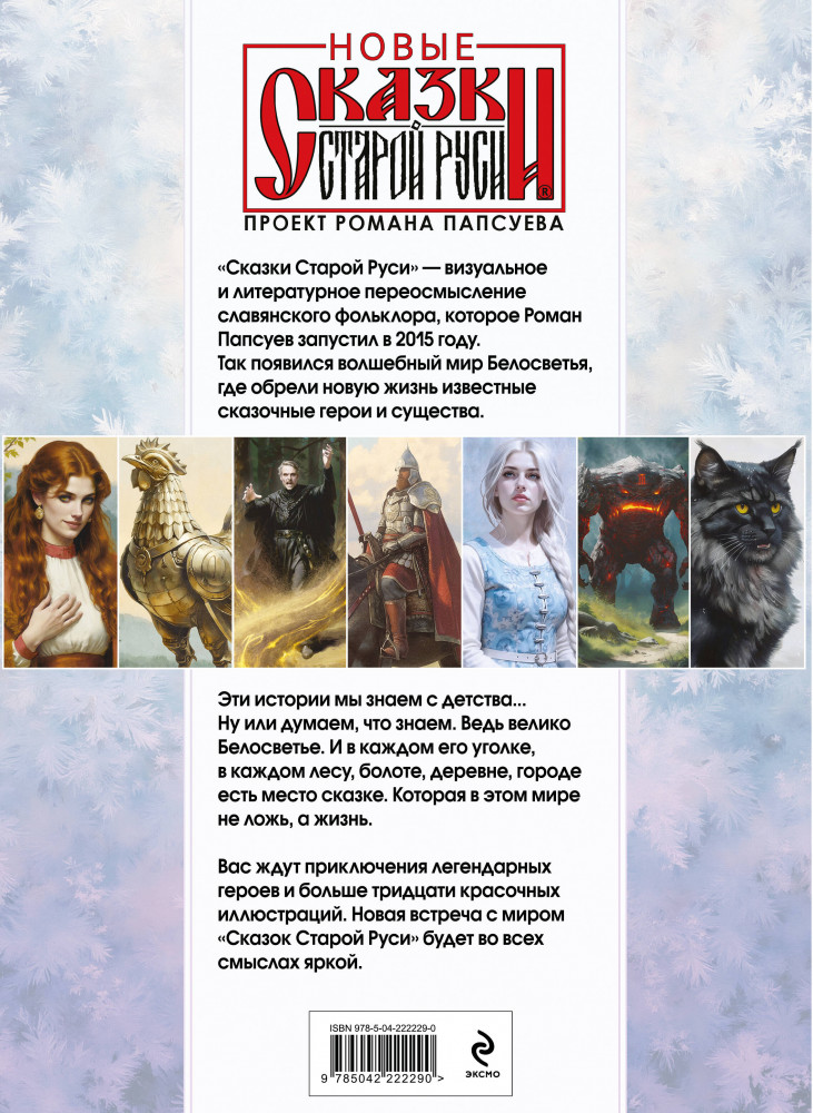 Серия: Артбук. Сказки старой Руси «Сказки Старой Руси» — визуальное и литературное переосмысление славянского фольклора, которое Роман Папсуев запустил в 2015 году. Так появился волшебный мир Белосветья, где обрели новую жизнь известные сказочные герои и существа. Эти истории мы знаем с детства... Ну или думаем, что знаем. Ведь велико Белосветье. И в каждом его уголке, в каждом лесу, в каждом болоте, деревне, городе есть место сказке. Которая в этом мире не ложь, а жизнь. Вас ждут приключения легендарных героев и больше тридцати красочных иллюстраций. Новая встреча с миром «Сказок Старой Руси» будет во всех смыслах яркой. |