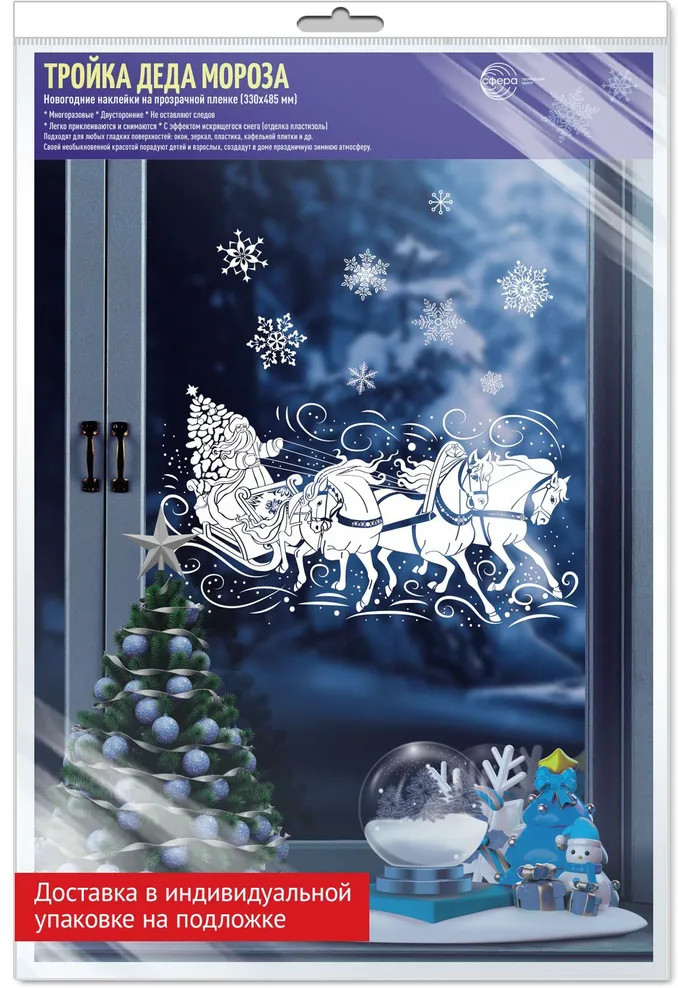 Открытая планета Наклейки для окон «Тройка с Дедом Морозом»новинка