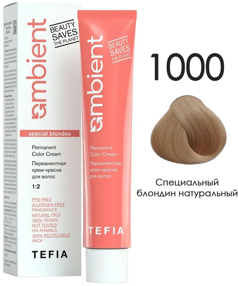 Tefia Крем-краска для волос перманентная, оттенок 1000 Специальный блондин натуральный