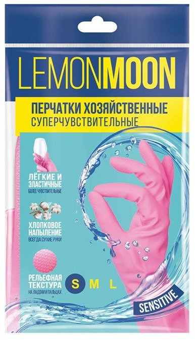 Lemon Moon Перчатки хозяйственные с напылением «Sensitive»