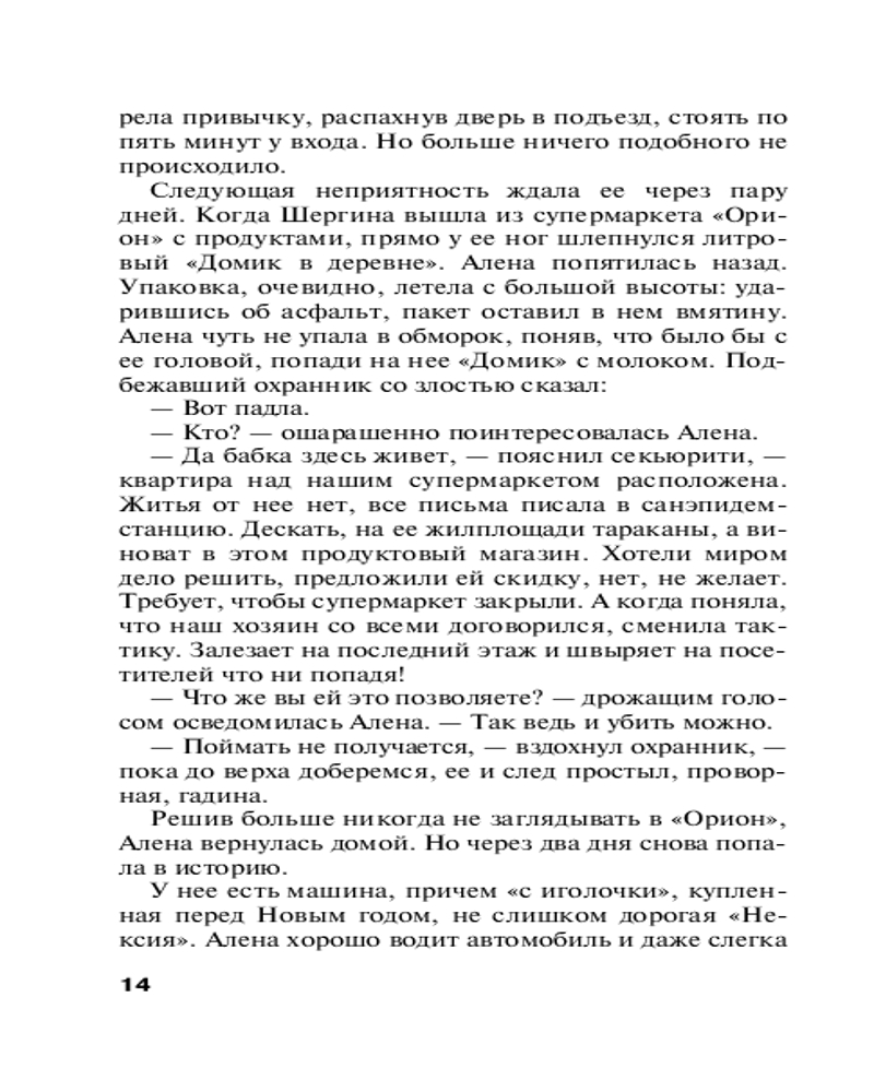 Серия: Лучшие детективы Донцовой (обложка) С тех пор как хозяйка Ивана Подушкина — бизнес-вумен Элеонора — возомнила себя великой сыщицей, он потерял покой! Их клиентка Алена уверена, что на ее жизнь покушаются, и даже знает кто — Марина Райкова. Нора советует Алене на время уехать из города, но та, не успев, трагически погибает. Элеонора посылает Ваню поговорить с Мариной, и после Райкова кончает с собой! Нора уверена: Алену и Марину убила одна и та же рука. А чтобы поймать убийцу за руку, попыхтеть придется Ивану Подушкину... |