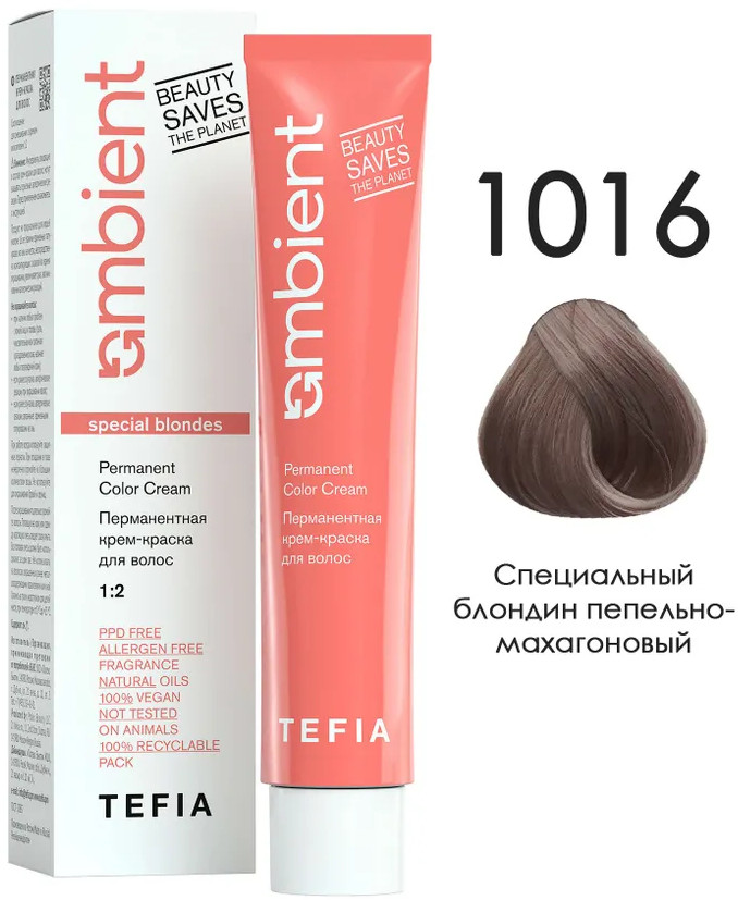 Tefia Крем-краска для волос перманентная, оттенок 1016 Специальный блондин пепельно-махагоновый
