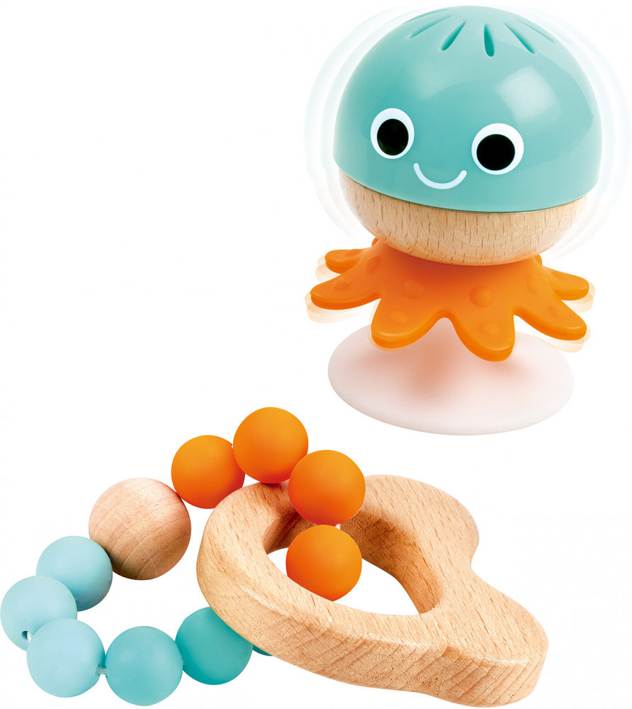 Набор погремушек Hape для малышей — это превосходная коллекция игрушек, в которую входят погремушка с фиксатором, погремушка на колесиках и жевательные бусинки для прорезывания зубов, которые помогут малышам на всех этапах их развития. Младенцы могут облегчить боль и дискомфорт, возникающие при прорезывании зубов, с помощью жевательных бусинок, которыми легко захватывать, играть с погремушкой, сидя на высоком стульчике, или кататься на погремушке во время ползания.