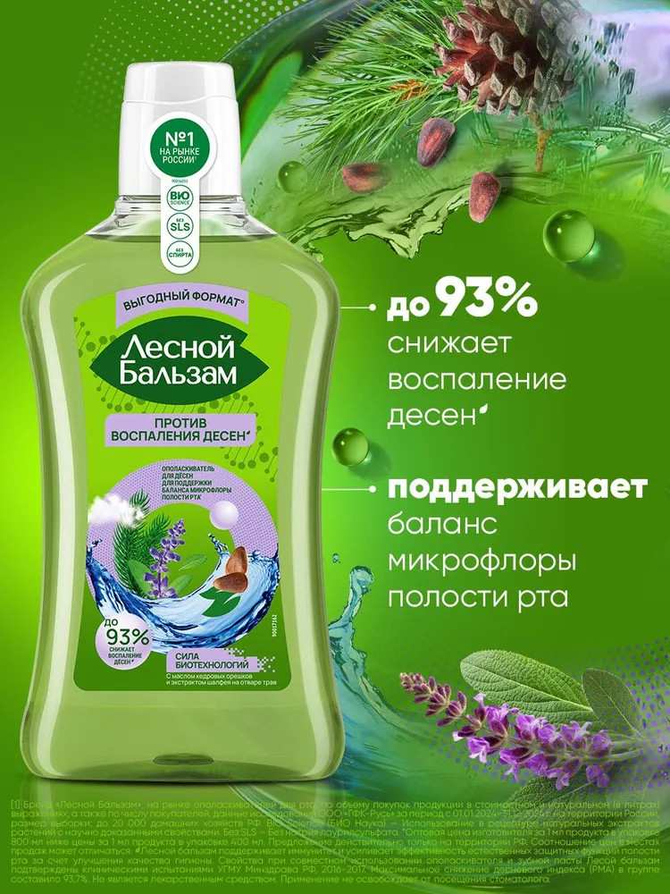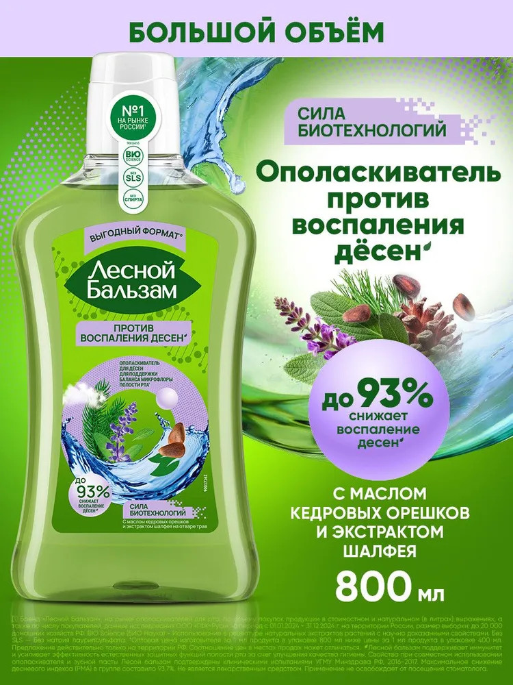 Лесной бальзам Ополаскиватель для полости рта с маслом кедровых орешков и экстрактом шалфея на отваре трав
