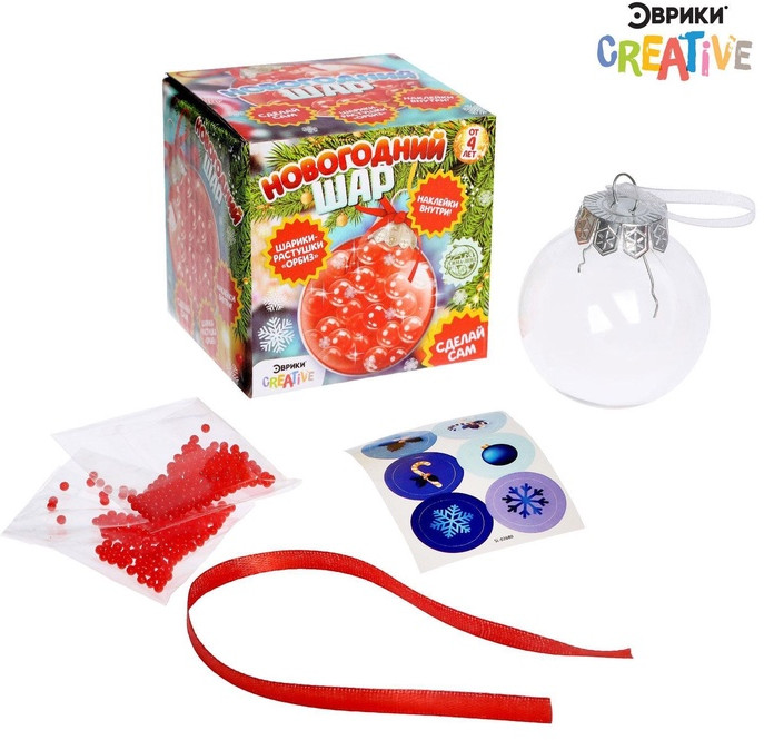 Набор для опытов «Новогодний шар» позволит ребёнку создать необычную игрушку и понаблюдать за ростом волшебных шариков. В набор входит: основа для игрушки — шар, наклейки, ленточка, растущие шарики. Как играть? Засыпьте в баночку красные и жёлтые шарики. Залейте шарики водой в соотношении 1:1. Потрясите, чтобы шарики равномерно распределились. Ваше уникальное новогоднее украшение готово. Шарики полностью вырастают за 6–8 часов. |