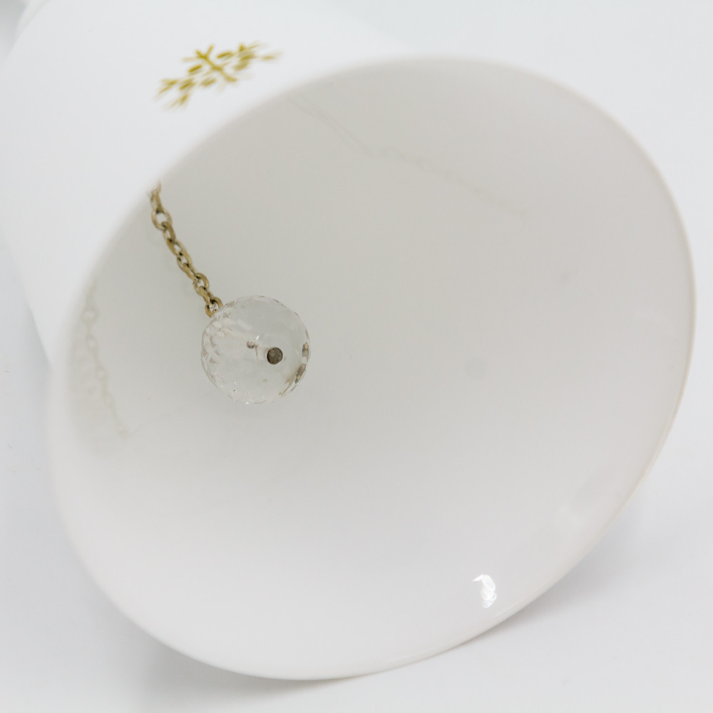 Новогодний колокольчик создаёт тёплое, уютное настроение зимних праздников. Стекло, покрытое белоснежной краской, напоминает о мирных зимних пейзажах, а позолоченный декор добавляет нотку элегантности и эксклюзивности. |