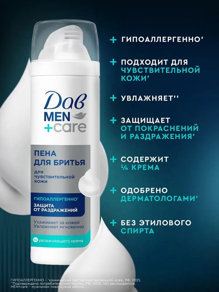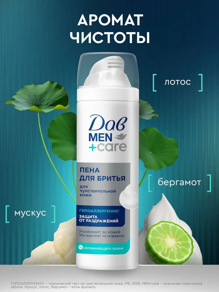 Серия: Men+Care Пена для бритья для мужчин с чувствительной кожей Дав Men+Care «Защита от раздражений» — это косметическое средство, разработанное специально для мужчин, стремящихся к качественному уходу за кожей лица. Продукт подходит для бритья как у взрослых мужчин, а также как средство для первого бритья у подростков с 14 лет. Увлажняющий уходовый продукт с мягким составом для мужчин разработан специально для обладателей чувствительной кожи лица. Пена для бритья мужская имеет бережную гипоаллергенную’ формулу (максимально снижен риск аллергических реакций), которая защищает ее от воспалений и раздражений, а также бережно ухаживает за кожей лица! |