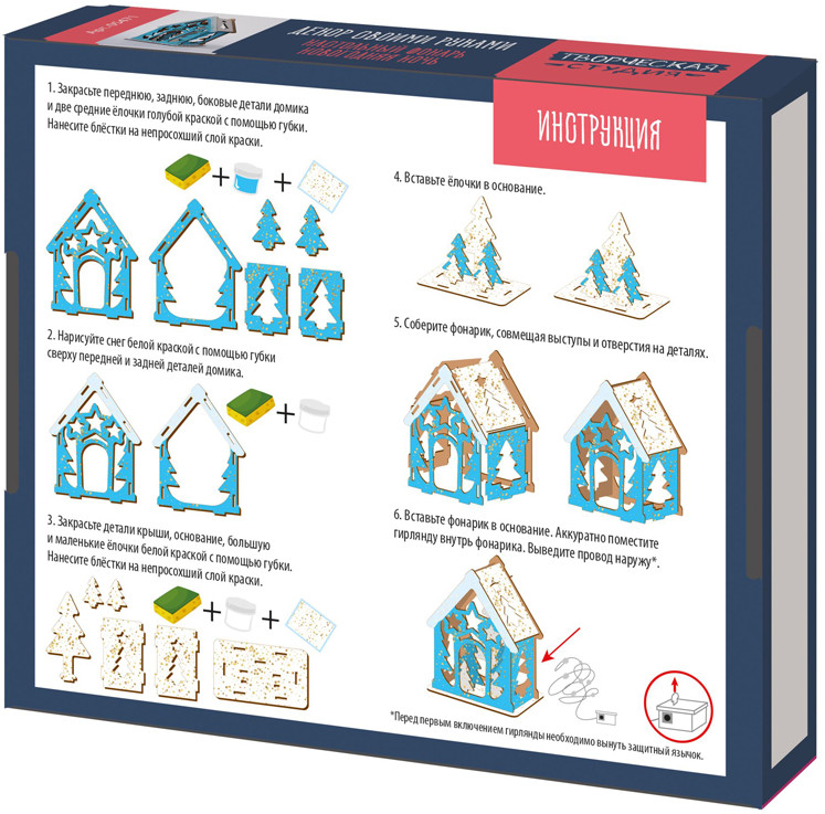Декор своими руками «Настольный фонарь. Новогодняя ночь» идеальный способ добавить уюта и праздничного настроения в ваш интерьер, а также прекрасная возможность для творческого времяпрепровождения всей семьей. Высота готового домика 15.5 см. Размеры основания — 12×7 см. |