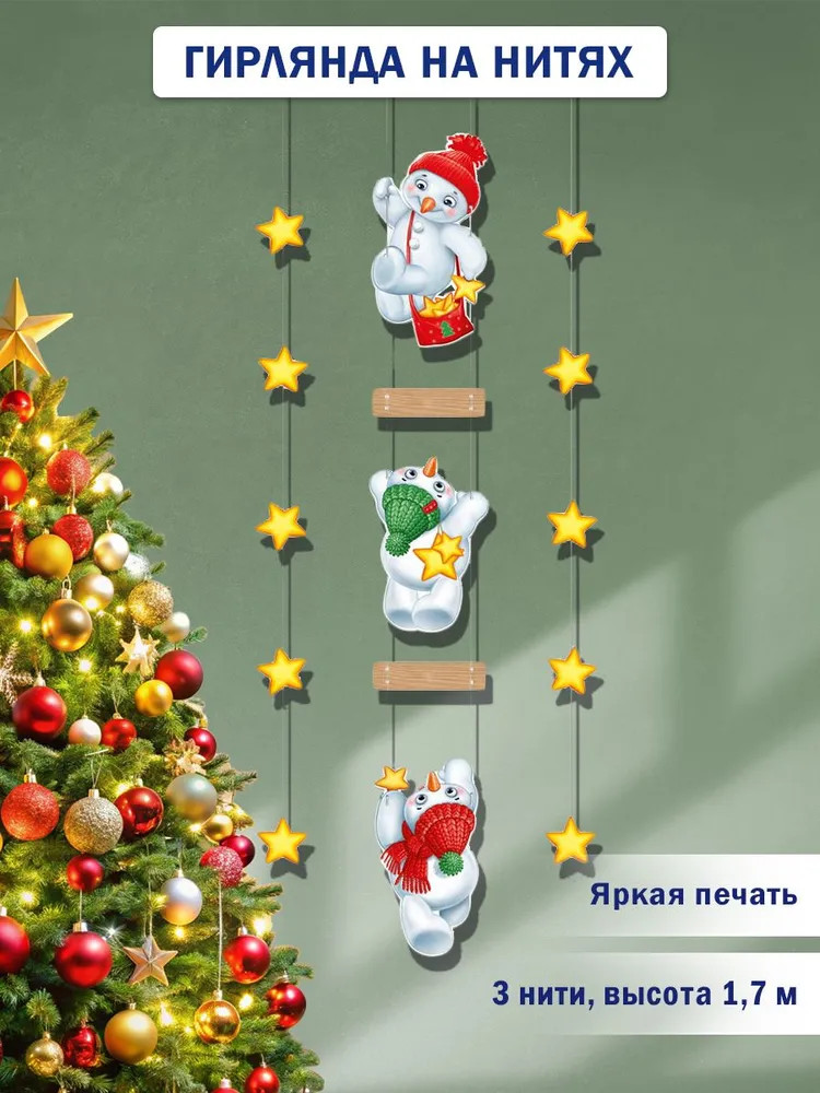 | Империя поздравлений Гирлянда на нитях «Озорные снеговички»