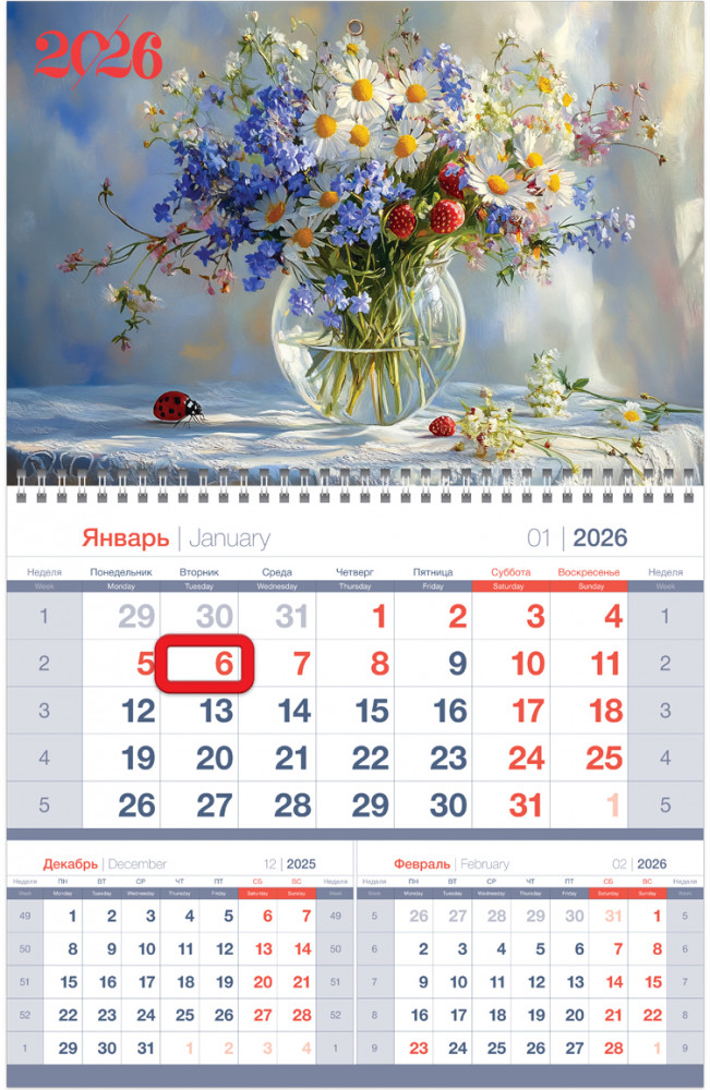 BG Календарь на 2026 год квартальный «Полевой букет»новинка