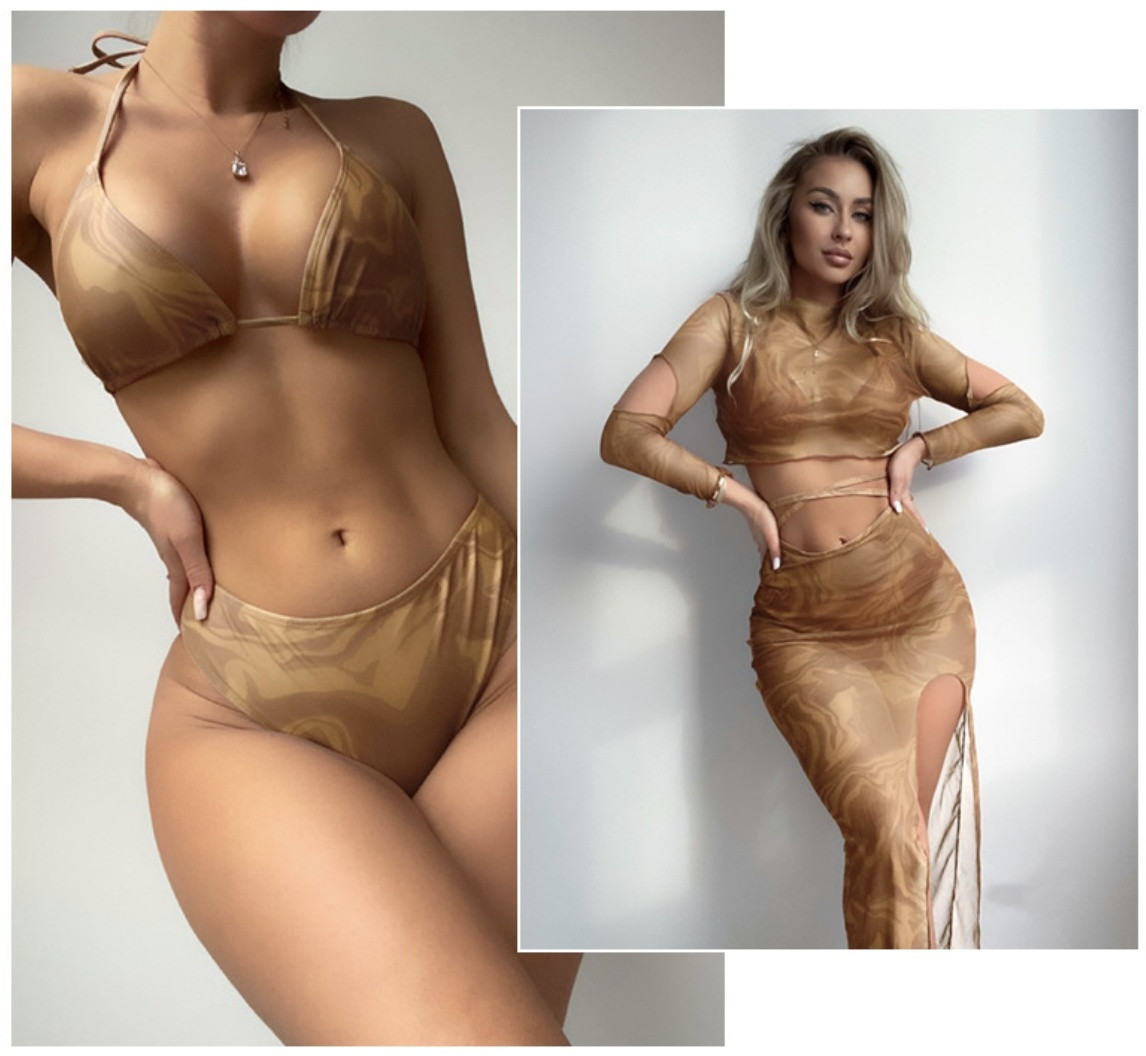 Эффектный раздельный купальник бикини, состоящий из лифа, топа, трусиков и юбкой сетка. Купальник женский раздельный идеален для плавания, загара, водных видов спорта, бассейна и неповторимых фотографий. Пляжная одежда выполнена из высококачественных материалов. Лиф с треугольными чашечками с завязках. Трусики имеют среднюю, комфортную посадку. Женский раздельный купальник стройнит и корректирует фигуру, выделяя её достоинства. Модный раздельный купальник изящно подчеркнёт вашу женственность, будет уместен как купальник в бассейн, так и на пляже. Купальный костюм актуальной расцветки подойдет баню, сауну, аквапарк и точно станет must have Вашего гардероба. Раздельные купальники — неотъемлемый элемент пляжной моды и незаменимый аксессуар для современных женщин и девушек в отпуске и на отдыхе.