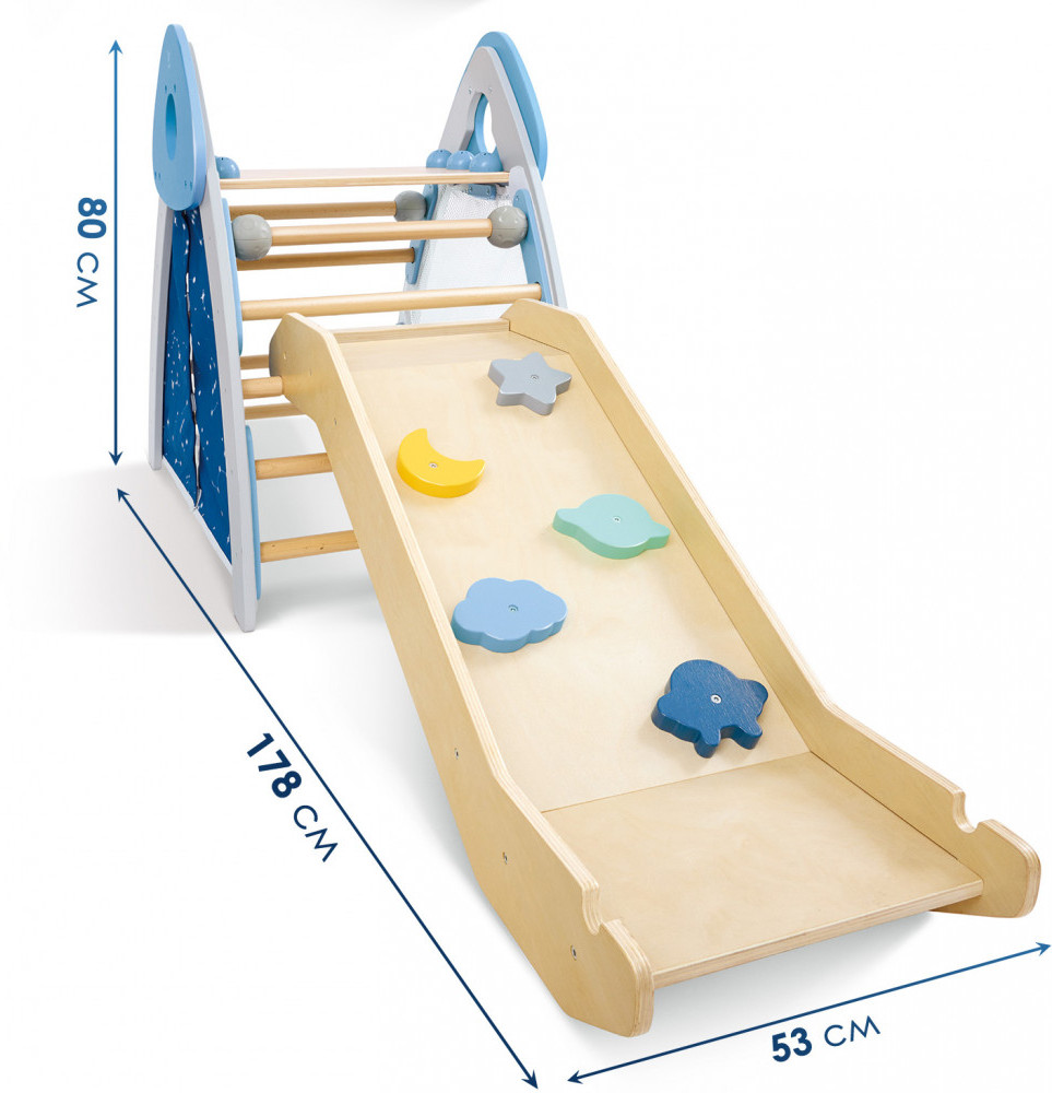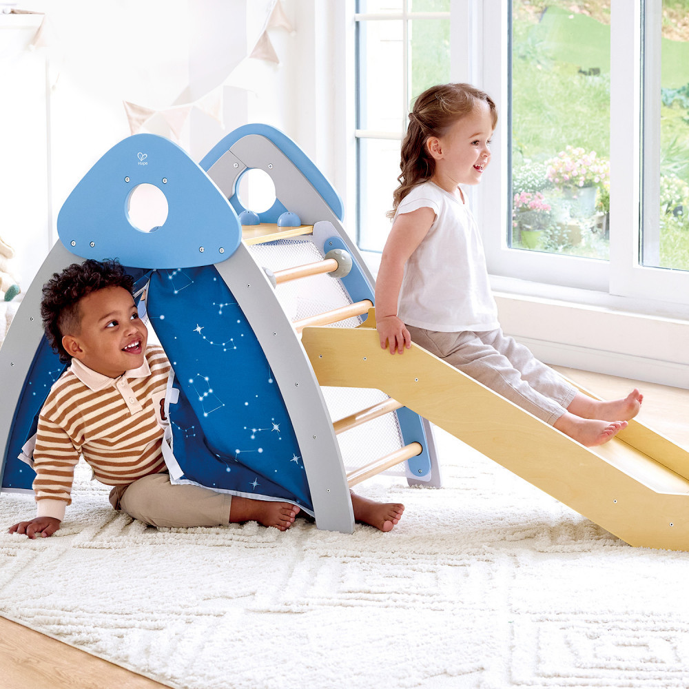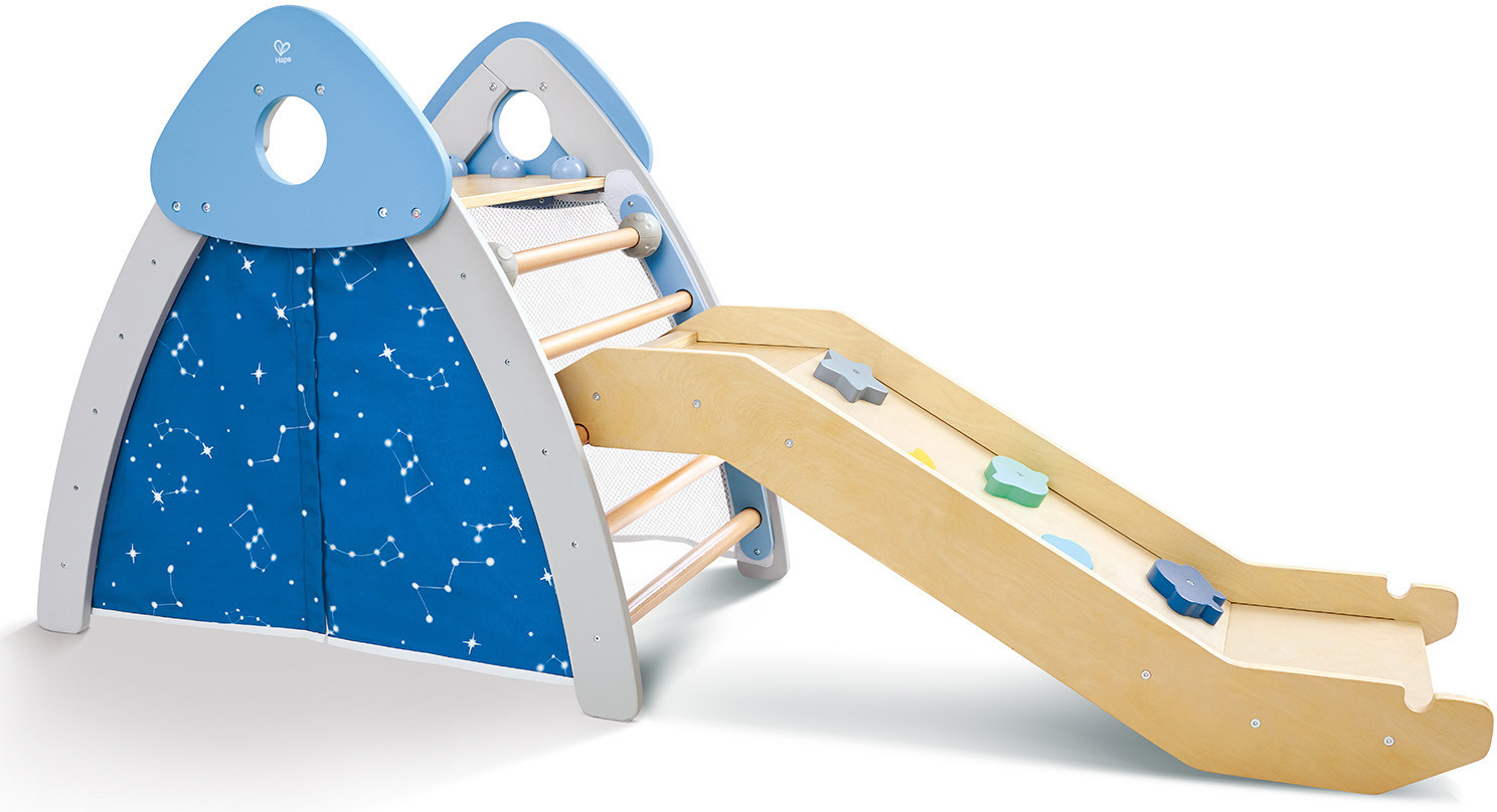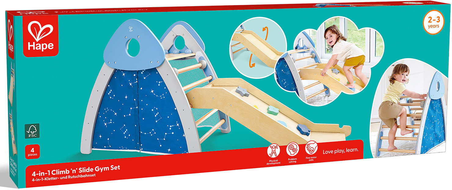 Hape Детский игровой комплекс 4-в-1 «Пиклер с горкой, скалодром»новинка В данный момент этот товар отсутствует в продаже. Возможно, у нас найдется аналогичный или похожий товар здесь. Компания Hape один из крупнейших в мире производителей игрушек из экологически чистых материалов. Игрушки Hape креативны и безопасны, соответствуют самым строгим международным стандартам качества и безопасности. Этот детский игровой многофункциональный комплекс Пиклер создан для безопасного и увлекательного игрового процесса. В комплекс входит всё необходимое для разнообразных игр: палатка для укрытия, футбольные ворота, горка для быстрых спусков, на обратной стороне которой находится поверхность для имитации скалолазания. |