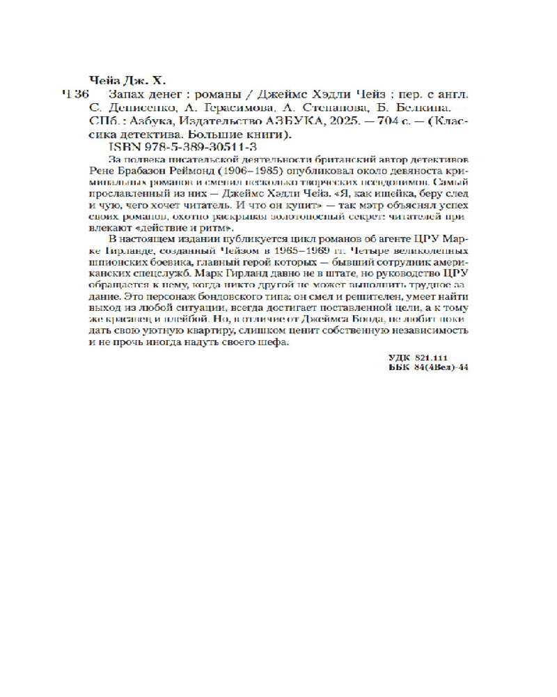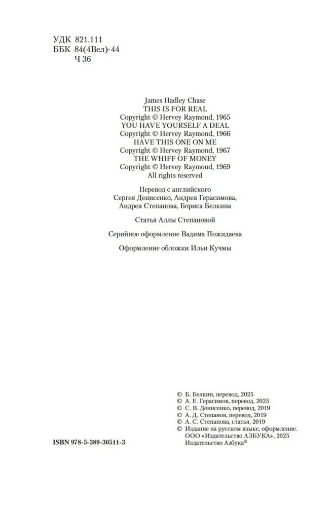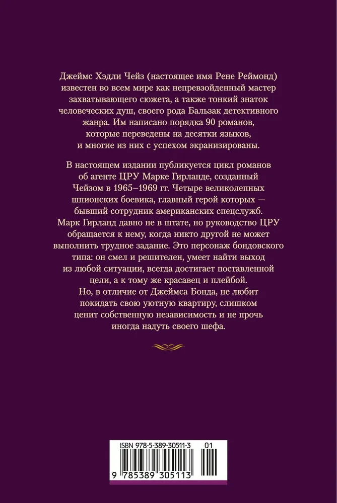 Серия: Классика детектива. Большие книги За полвека писательской деятельности британский автор детективов Рене Брабазон Реймонд (1906–1985) опубликовал около девяноста криминальных романов и сменил несколько творческих псевдонимов. Самый прославленный из них — Джеймс Хэдли Чейз. «Я, как ищейка, беру след и чую, чего хочет читатель. И что он купит» — так мэтр объяснял успех своих романов, охотно раскрывая золотоносный секрет: читателей привлекают «действие и ритм». |