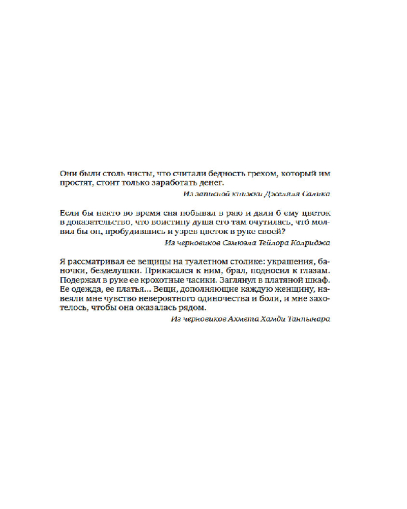 В Музее Невинности собраны предметы, которые способны рассказать свою особую историю: коробок спичек, карманный фонарик, потерянная сережка... Проходя по его залам, читатель незаметно погружается в атмосферу любви и печали, столь характерную для творчества Орхана Памука. В основу его романа «Музей Невинности» положена история отношений между отпрыском состоятельной семьи, стоящим на пороге выгодной помолвки, и неожиданно встреченной им подругой детства; история, бережно хранимая в особом музее, созданном «не для того, чтобы ходить по нему и смотреть на вещи, а для того, чтобы чувствовать и жить». |