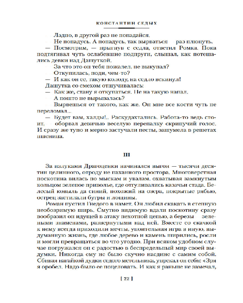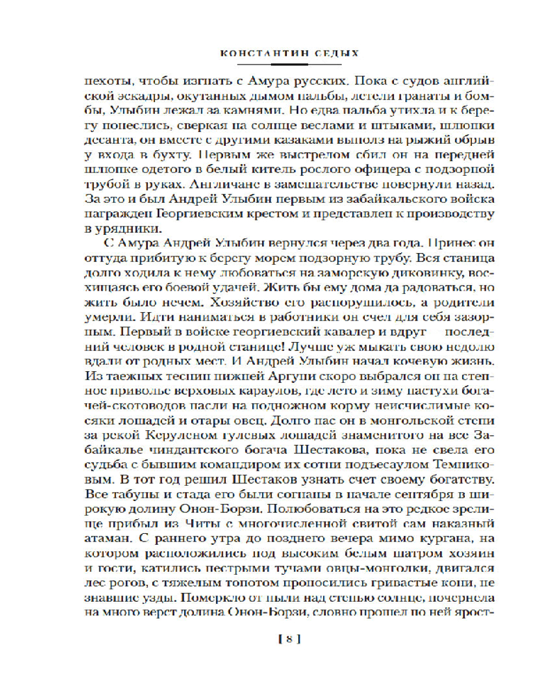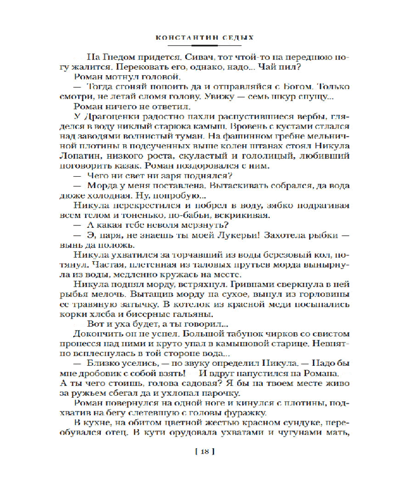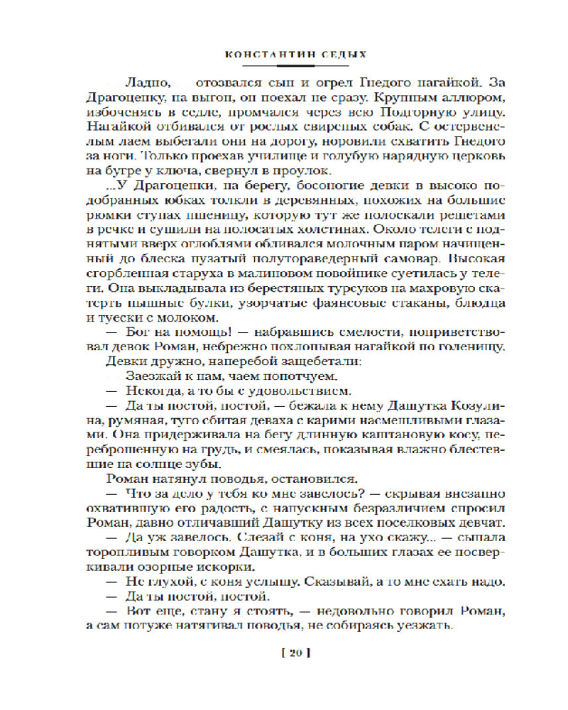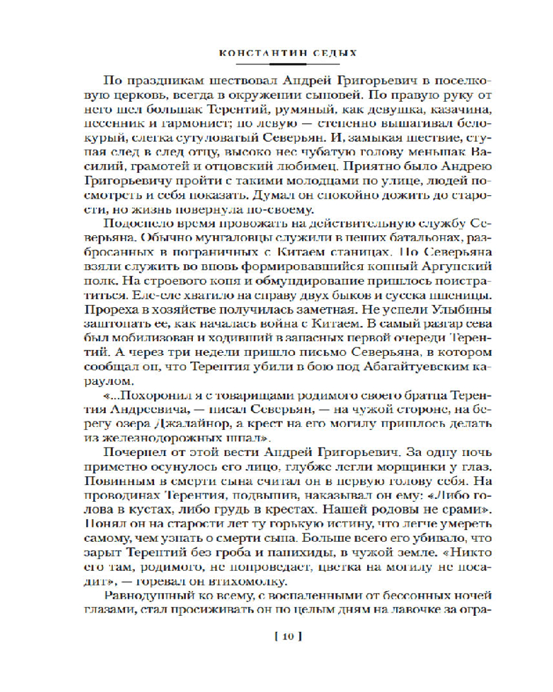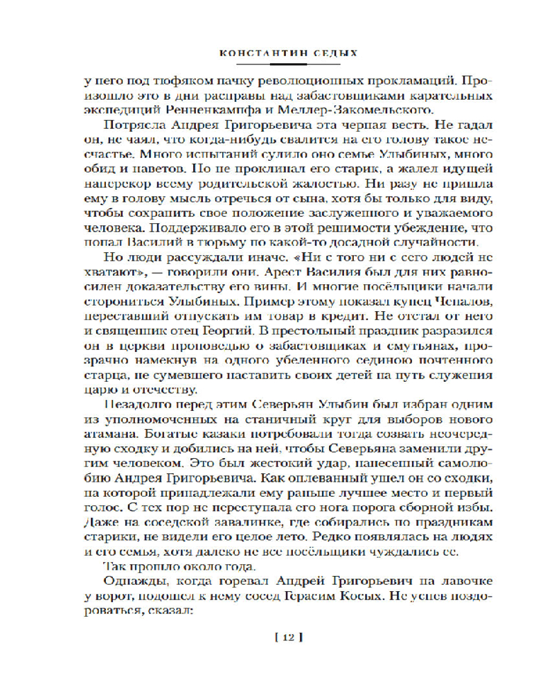 | Константин Фёдорович Седых — русский советский писатель. Родился в пос. Поперечный Зарентуй Нерченско-Заводского района Читинской области в трудовой казачьей семье. Будучи учащимся Зарентуйской школы, начал писать корреспонденции в газеты. |