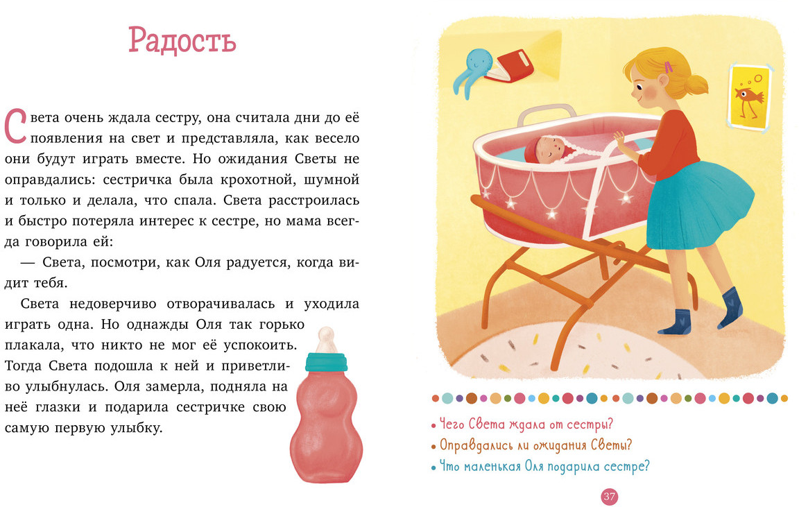 • крупный шрифт и простой текст — идеально для первого чтения;