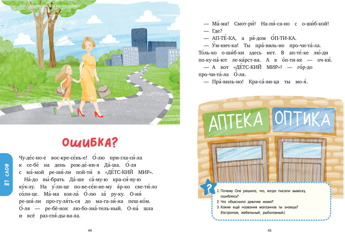 Сказки для чтения по слогамновинка В данный момент этот товар отсутствует в продаже. Возможно, у нас найдется аналогичный или похожий товар здесь. Серия: Школьное чтение В этой книге есть все, что поможет ребенку научиться читать легко и с интересом: короткие динамичные тексты, красивые сюжетные иллюстрации, понятные слова, разделенные на слоги, проставленные ударения, крупный комфортный шрифт. У каждой сказки этой книги для детей интересный сюжет, и к каждой сказке есть вопросы, чтобы помочь ребенку осмыслить прочитанное. |