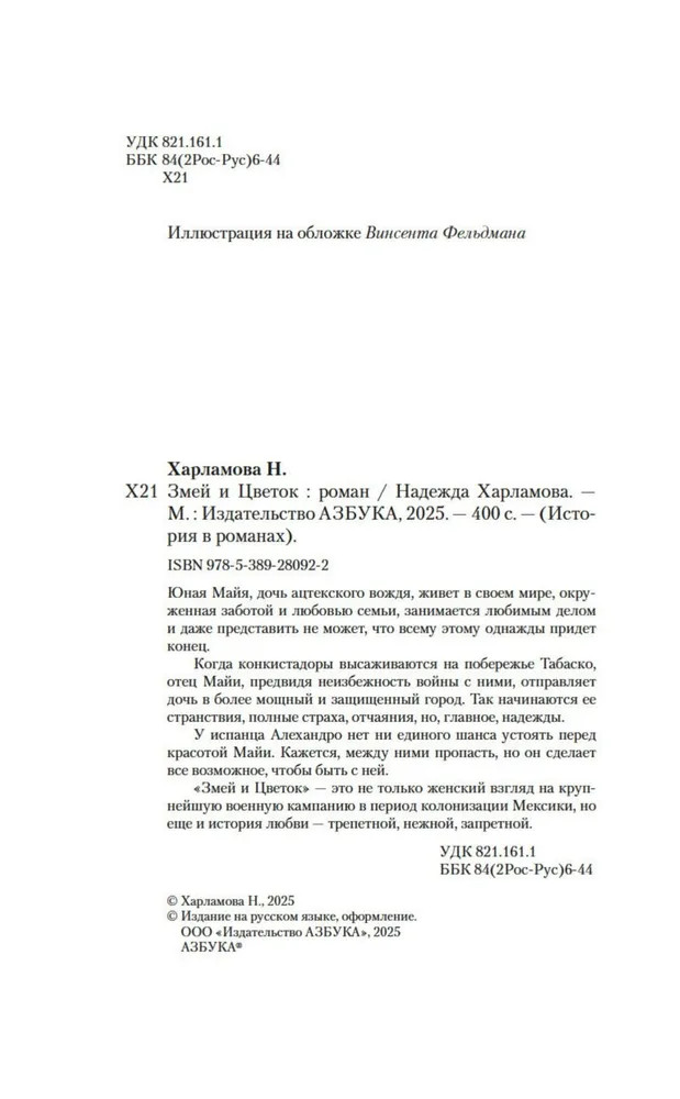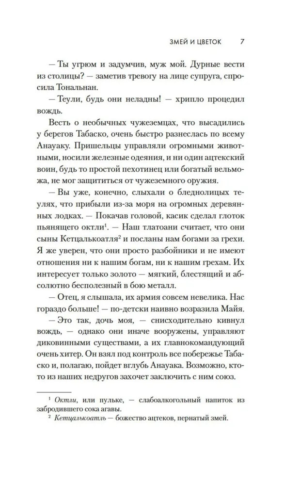 «Змей и Цветок» — это не только женский взгляд на крупнейшую военную кампанию в период колонизации Мексики, но еще и история любви —трепетной, нежной, запретной.  |