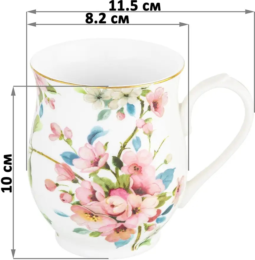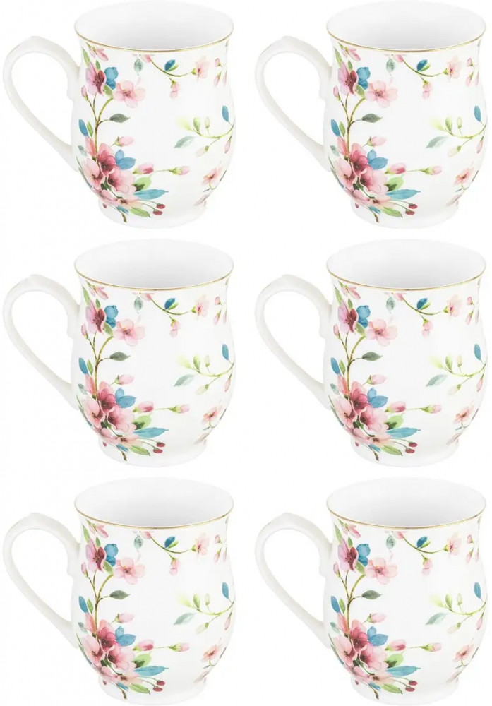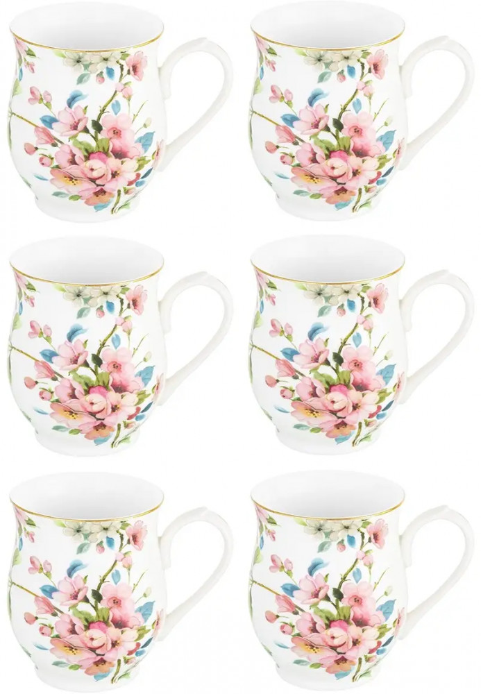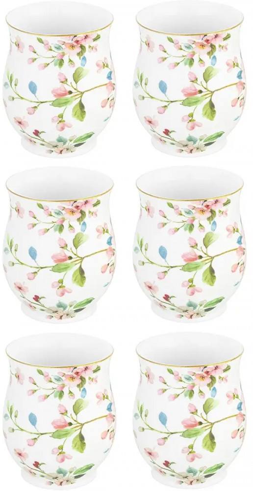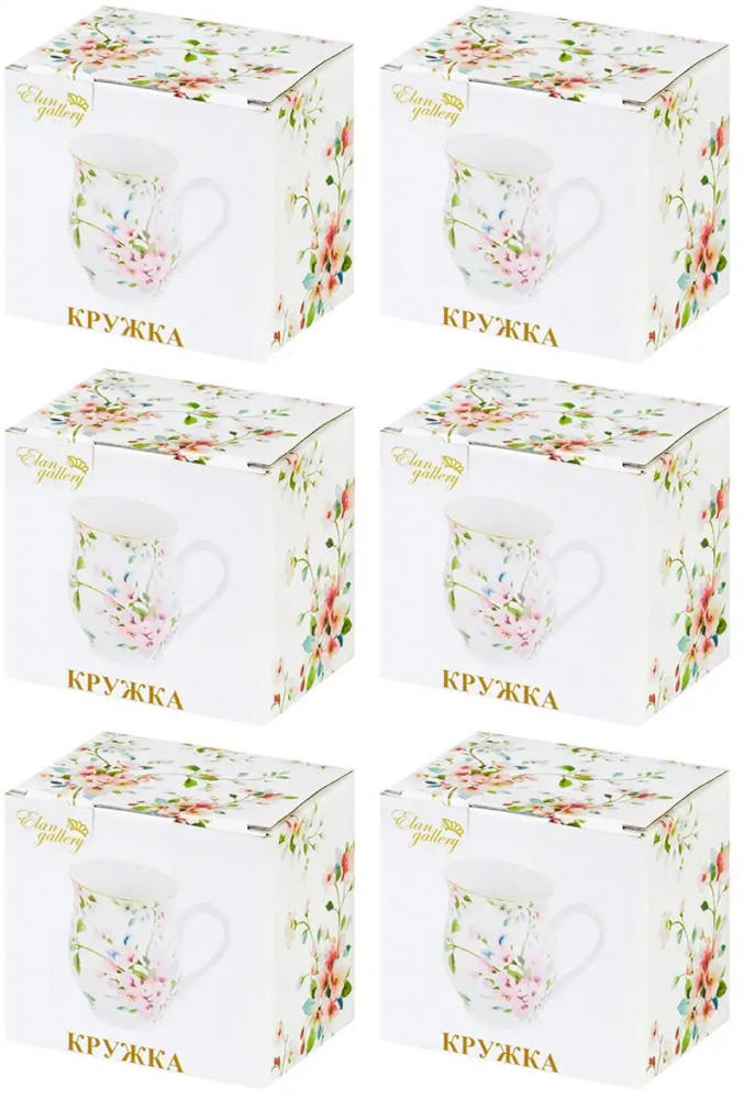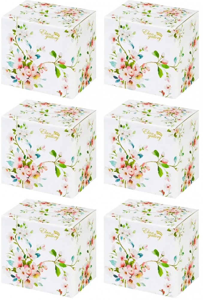 Elan Gallery Набор кружек на подставке «Яблоневый цвет на белом»новинка