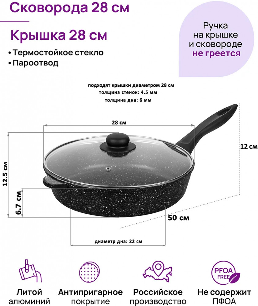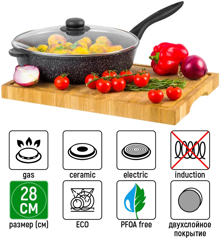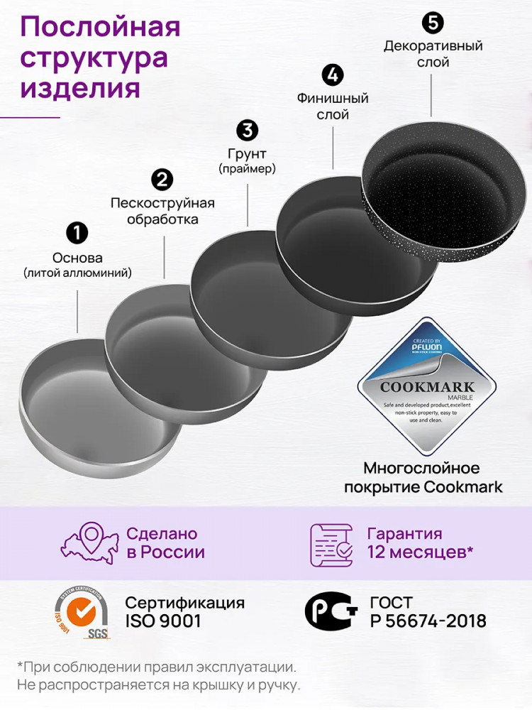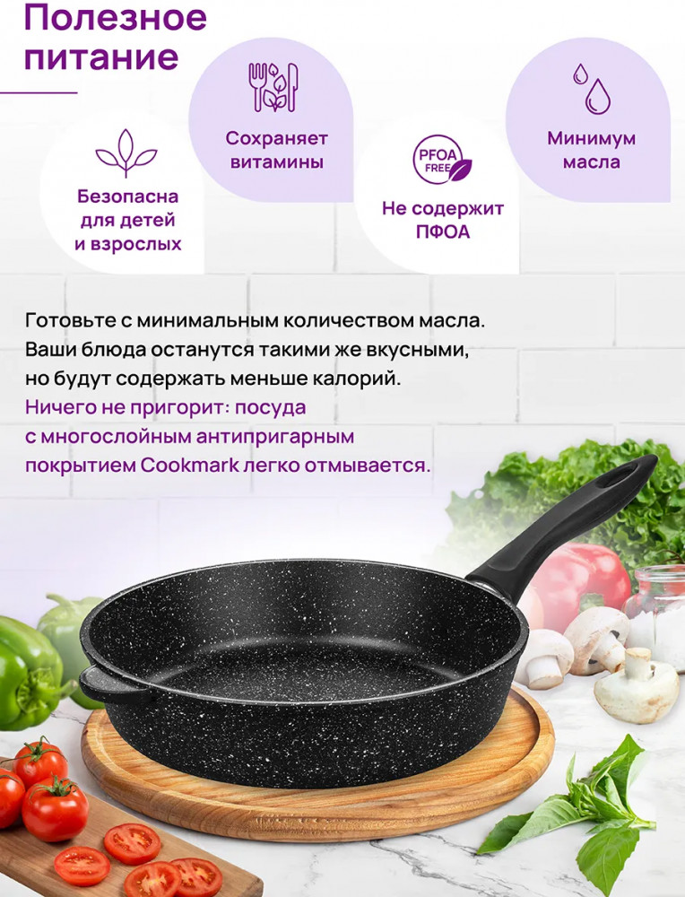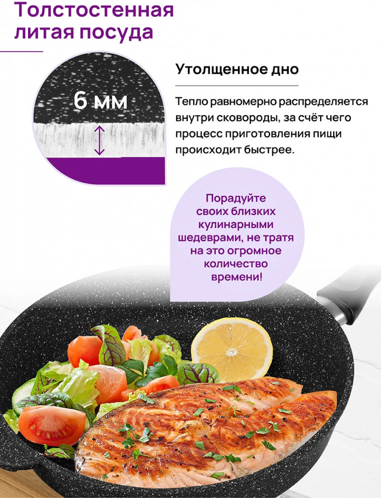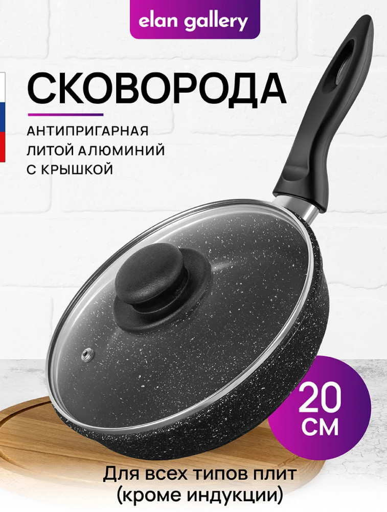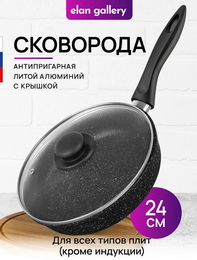 Elan Gallery Набор посуды для приготовления из литого алюминия с крышками «Черный мрамор»