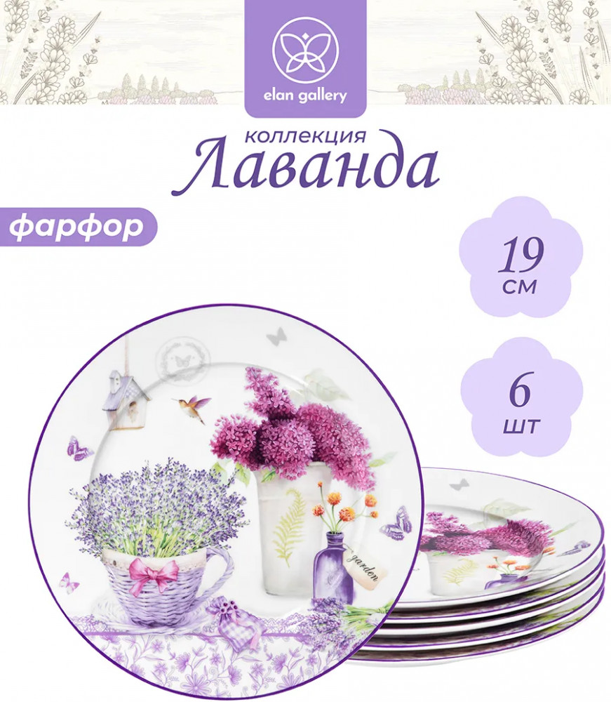 Набор 6 круглых тарелок Elan Gallery «Лаванда» выполнен из фарфора new bone china, сочетающего в себе изящность и высокую прочность. Размер каждой — 19×19×2 см. За счёт гладкости изделия легко отмываются, поэтому долго сохраняют привлекательный вид и практичны в использовании. От классического костяного фарфора new bone china отличается большей экологичностью в производстве. Серия «Лаванда» украшена нежным принтом на тему Прованса — французской провинции, которая славится своими лавандовыми полями и красивыми пейзажами. Изображение пышных букетов лаванды и гортензии позволит окунуться в атмосферу тепла, гармонии и южного солнца, не покидая вашей кухни или столовой!