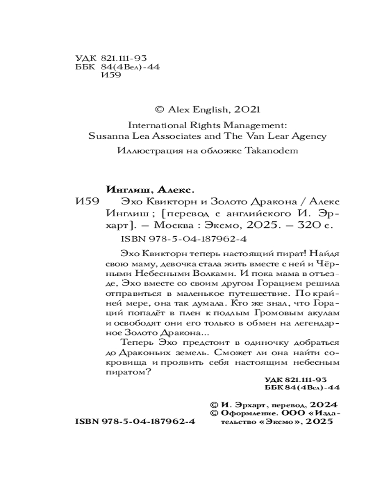 Серия: Детск. Небесные пираты Эхо Квикторн теперь настоящий пират! Найдя свою маму, девочка стала жить вместе с ней и Чёрными Небесными Волками. И, пока мама в отъезде, Эхо вместе со своим другом Горацием решила отправиться в маленькое путешествие. По крайней мере, она так думала. Кто же знал, что Гораций попадет в плен к подлым Громовым акулам и освободят они его только в обмен на легендарное золото дракона... Теперь Эхо предстоит в одиночку добраться до Драконьих земель. Сможет ли она найти сокровища и проявить себя настоящим небесным пиратом? |