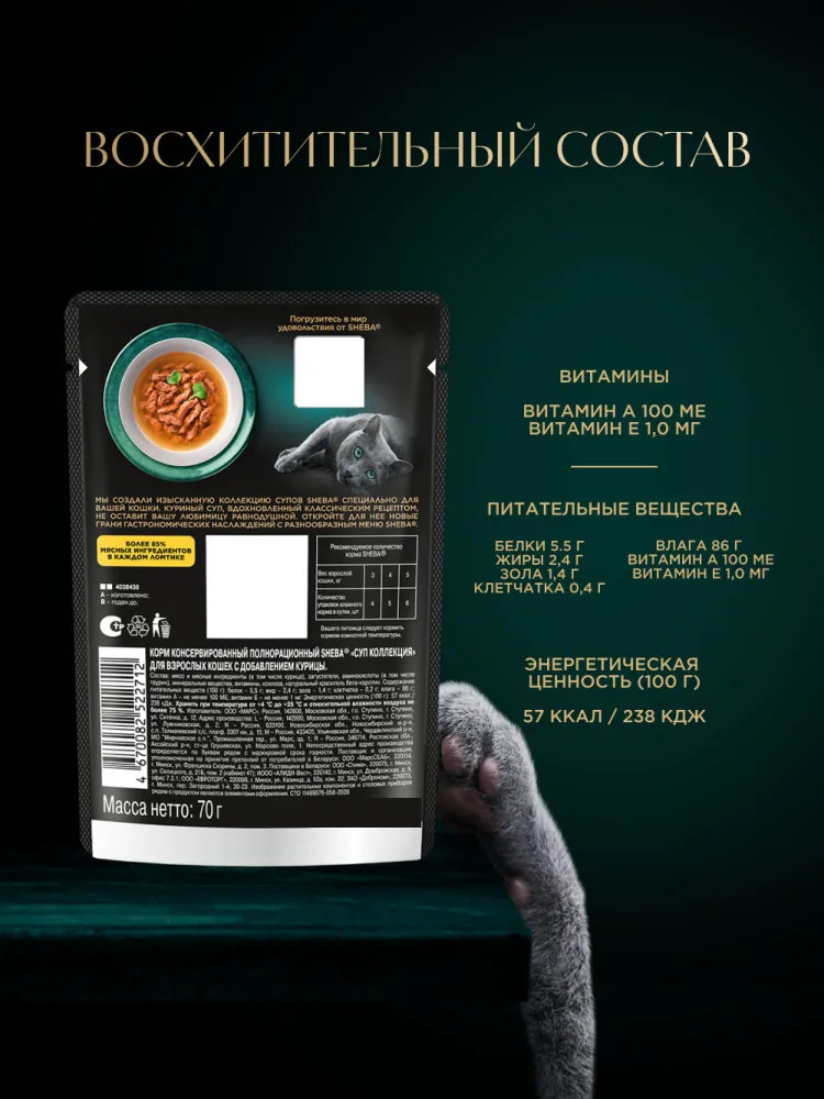 Sheba Корм влажный для взрослых кошек с добавлением курицы «Классический куриный суп»