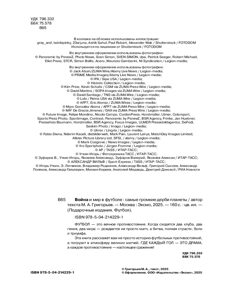 Серия: Подарочные издания. Футбол Футбол — это вечное противостояние. Когда сходятся два клуба, два гения, два мира — рождается не просто матч, а битва, полная страсти, боли и триумфа. Футбол во всей своей силе и красоте — легендарные матчи, культовые кадры и незабываемые истории. Эта книга — великолепный подарок для настоящих ценителей этого вида спорта! Вы узнаете, как зародилось Эль Класико, между какими европейскими и российскими командами вспыхнули самые ожесточенные дерби, каким образом фанатские движения меняли культуры боления, как противостояния культовых тренеров и игроков изменили само понимание футбола. Эта книга расскажет вам не просто историю футбольных противостояний, а погрузит в атмосферу великих матчей, где каждый гол — это драма, а каждое противостояние — настоящее сражение! |