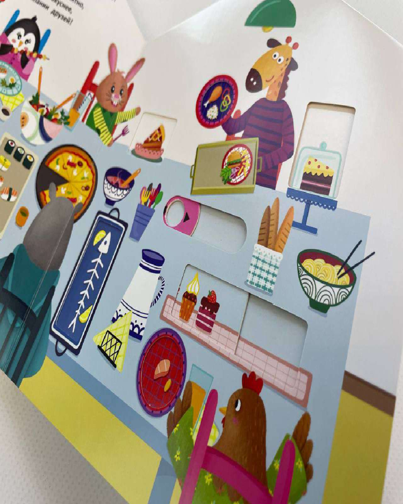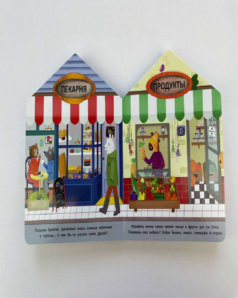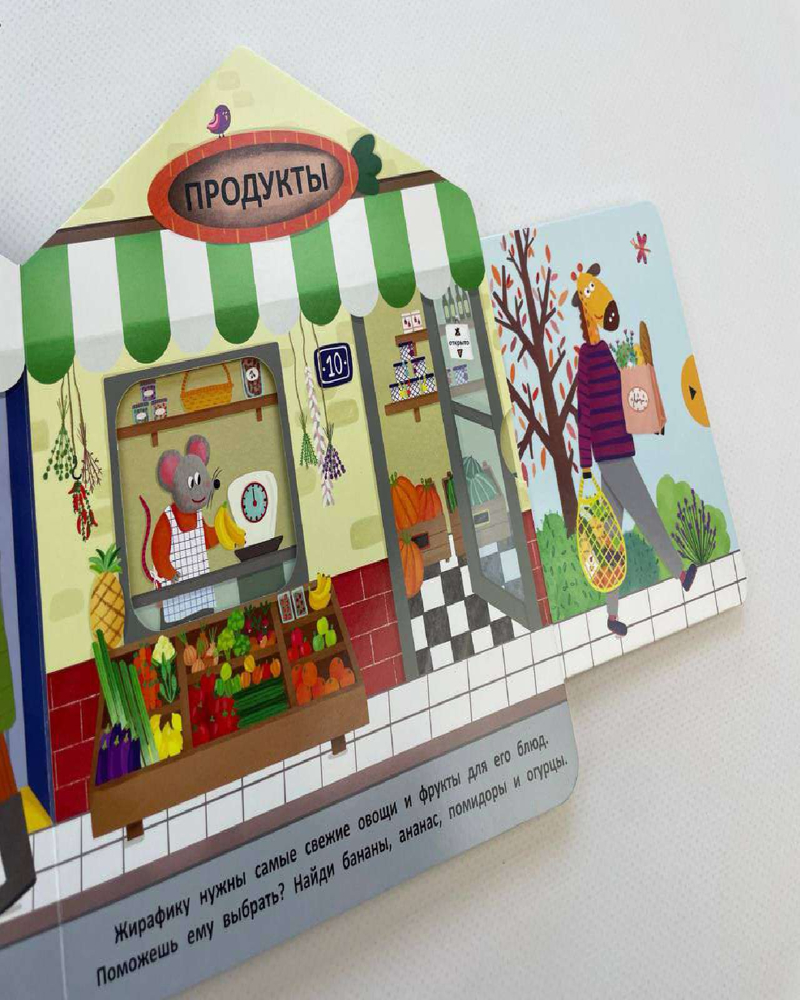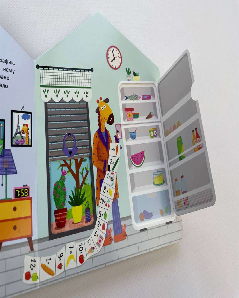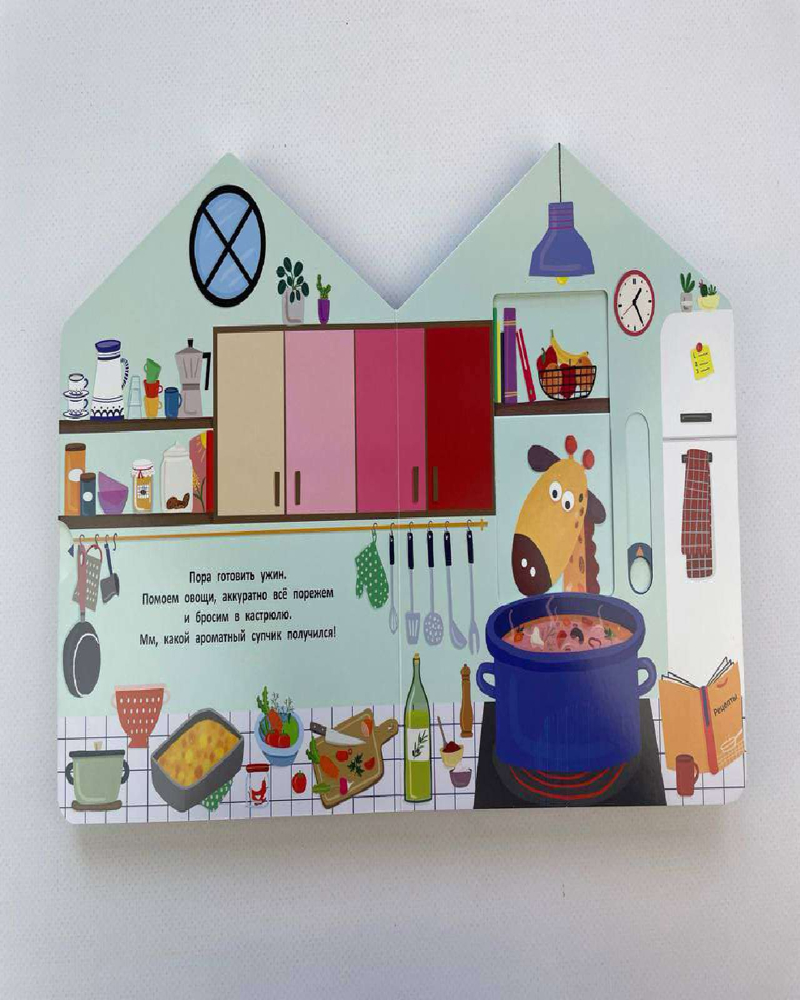 Добро пожаловать в гости к Жирафику! В этой интерактивной книжке-игрушке много сюрпризов: малыш сможет заглянуть в каждую комнату домика и узнать, чем любит заниматься дружелюбный хозяин. А ещё открыть холодильник, сходить в магазин и приготовить угощение для друзей. Интерактивные элементы помогают развивать мелкую моторику. Ребёнок сможет потянуть, покрутить и подвигать детали, тренируя пальчики. Книжки-игрушки предназначены для детей до 3-х лет, их приятно читать перед сном. Яркие иллюстрации, необычный формат и качественные материалы делают книгу отличным подарком по любому поводу. Соберите всю серию книжек-домиков Цветочной улицы: «В гостях у Бегемотика», «В гостях у Кролика», «В гостях у Крокодильчика», «Мастерская Деда Мороза».
