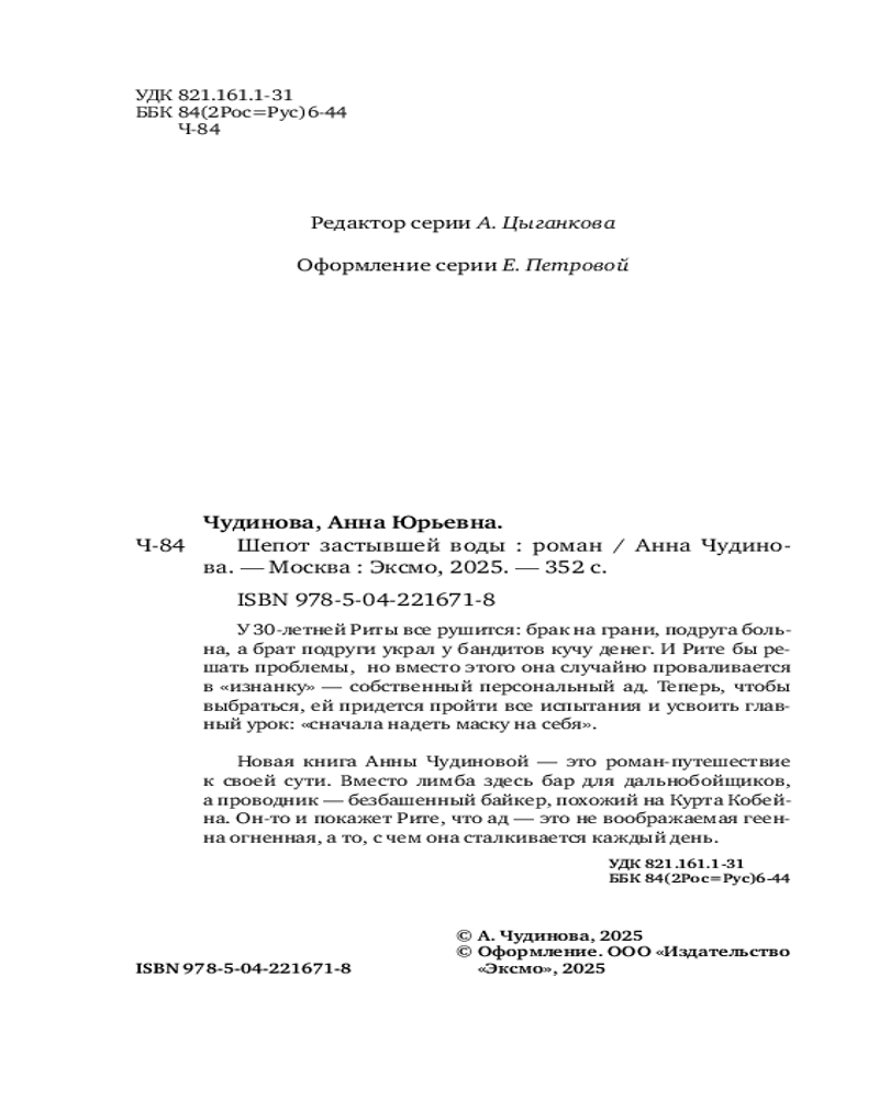 Серия: Почти счастливые люди У 30-летней Риты всё рушится: брак на грани, подруга больна, а брат подруги украл у бандитов кучу денег. И Рите бы решать проблемы, но вместо этого она случайно проваливается в «изнанку» — собственный персональный ад. Теперь, чтобы выбраться, ей придется пройти все испытания и усвоить главный урок: «сначала надеть маску на себя». |