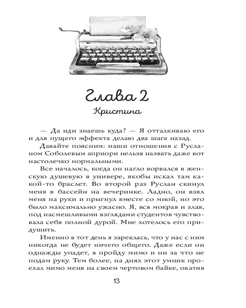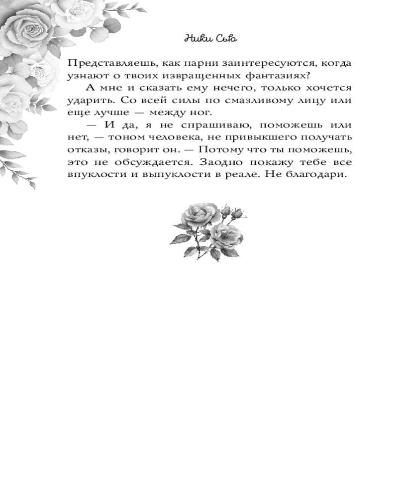 Серия: Young adult. Нежные романы Ники Сью о первых чувствах Я — идеальная студентка. Исправно посещаю занятия, конспектирую все лекции, мечтаю о блестящей карьере, а красный диплом почти у меня в кармане. По крайней мере, так кажется всем вокруг. Никто не знает, что по ночам я проживаю другую жизнь: пишу истории про обжигающую душу любовь в надежде исцелить разбитое сердце. Никто не должен был узнать мой секрет. Особенно Руслан Соболев. Опасный. Безбашенный. Жутко притягательный. Хулиган, которого обожают и боятся многие в нашем университете. Теперь моя тайна в его руках, и за молчание этот негодяй хочет, чтобы я притворилась его девушкой. Что ж, я соглашусь... и заставлю Руслана пожалеть о его решении. |