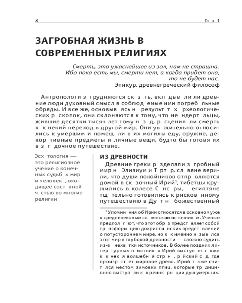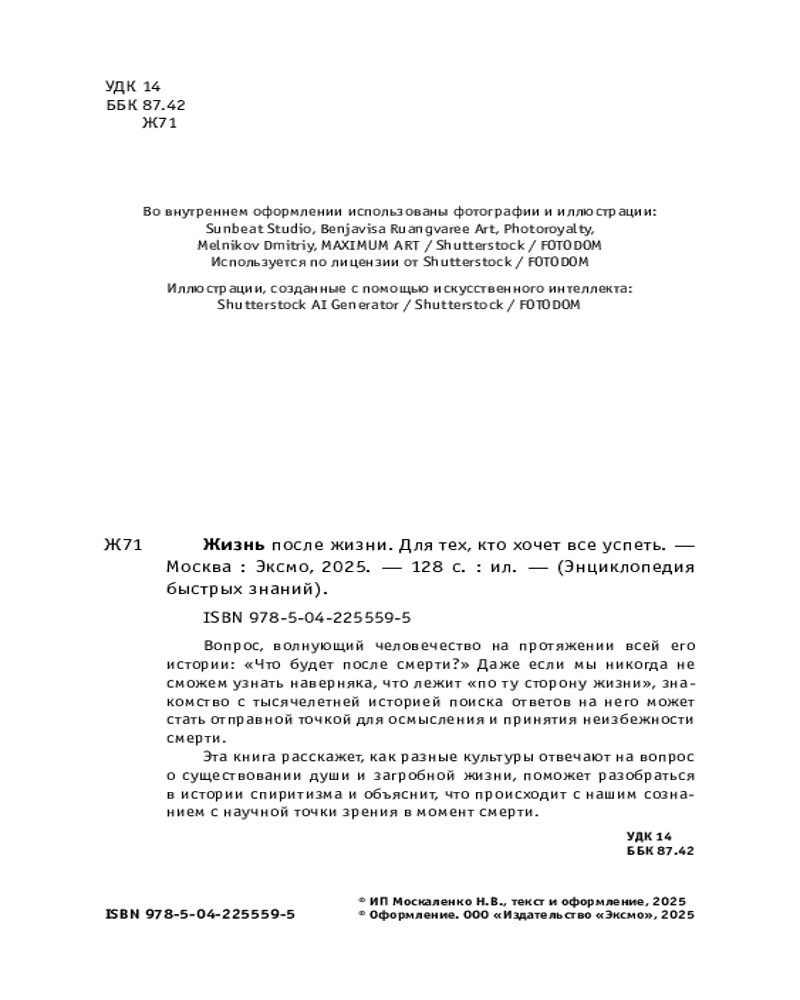 Серия: Энциклопедия быстрых знаний (обложка) Вопрос, волнующий человечество на протяжении всей его истории: «Что будет после смерти?». Даже если мы никогда не сможем узнать наверняка, что лежит «по ту сторону» жизни, знакомство с тысячелетней историей поиска ответов на него может стать отправной точкой для осмысления и принятия неизбежности смерти. |