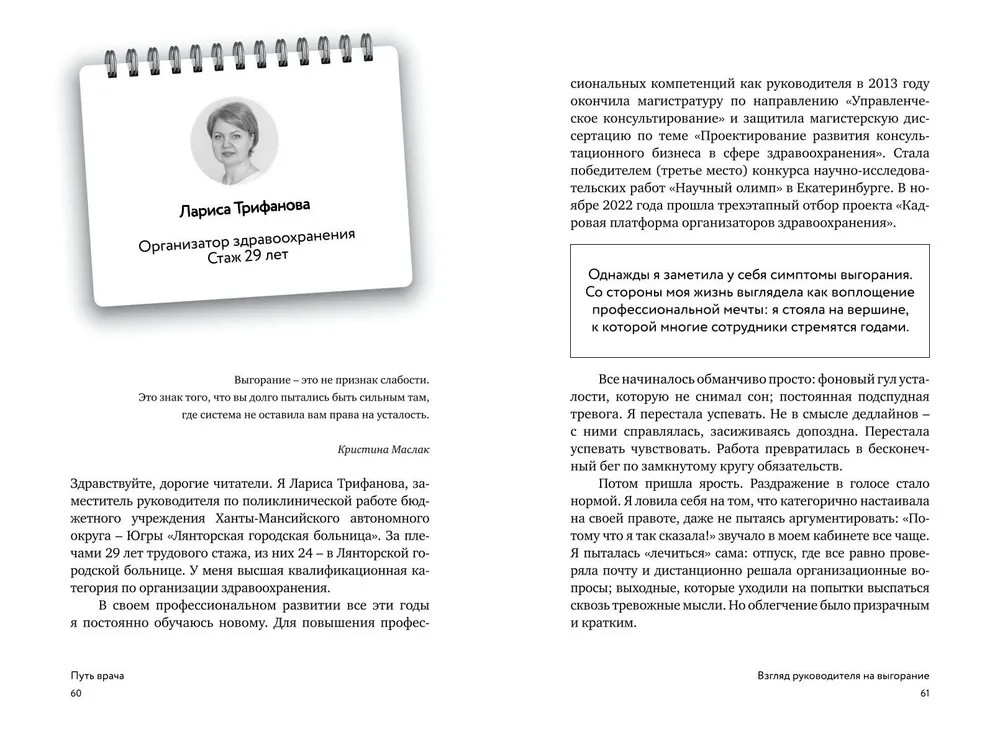 Серия: Все грани здоровья Быть врачом — значит ежедневно самоотверженно нести ответственность за жизнь других людей, не имея права на ошибку. Но тем, кто выбрал медицину как дело своей судьбы, тоже нужны помощь и поддержка. В новой книге практикующие врачи разных специальностей — терапевты, кардиологи, неонатологи, координаторы здравоохранения и многие другие впервые откровенно делятся тем, как столкнулись с профессиональным выгоранием и что именно помогло им справиться с внутренними кризисами и выстроить практику так, чтобы сохранить радость и силу профессии. Всем читателям, чей жизненный путь связан с медициной, эта книга даст ответ на вопрос, как соблюсти баланс и оставаться надежной опорой для своих пациентов. |