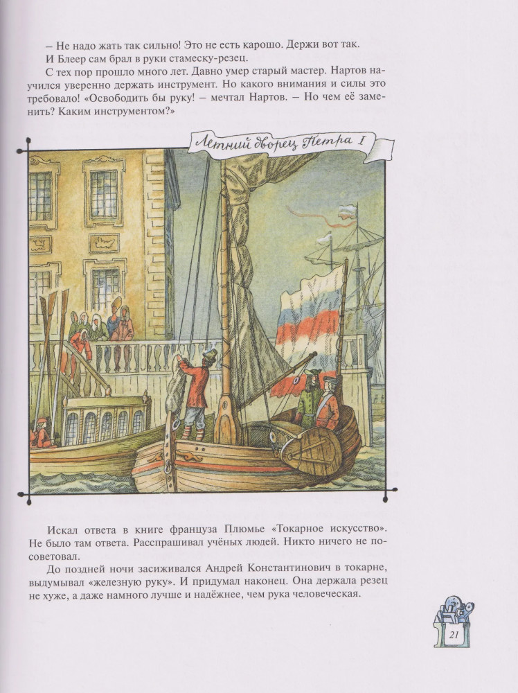 Книга рассказывает о жизни и подвигах изобретателей отечественной техники: станкостроителя Андрея Нартова, создателя паровой машины Ивана Ползунова, строителей первого русского паровоза Ефима и Мирона Черепановых, механика Ивана Кулибина, конструктора «самобеглой коляски» Леонтия Шамшуренкова, основоположника космонавтики Константина Циолковского. Их жизненный путь — яркий пример настойчивого стремления к цели, высокого творческого горения талантливых людей, вышедших из народа. |