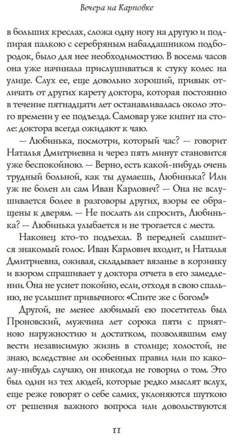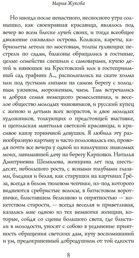 Серия: Из жизни благородных девиц Книга «Вечера на Карповке», словно забытая шкатулка с чудными украшениями, окажется прекрасной находкой для мечтательных, но решительных барышень. Петербург. Белые ночи. Дачи на реке Карповке. В доме почтенной старушки Натальи Дмитриевны часто собирается небольшой кружок, коротающий дождливые вечера за чтением, музыкой, разговорами. Однажды после спора о литературе они решают сочинить по повести, основанной на своих воспоминаниях, и предоставить эти повести на суд общества. |