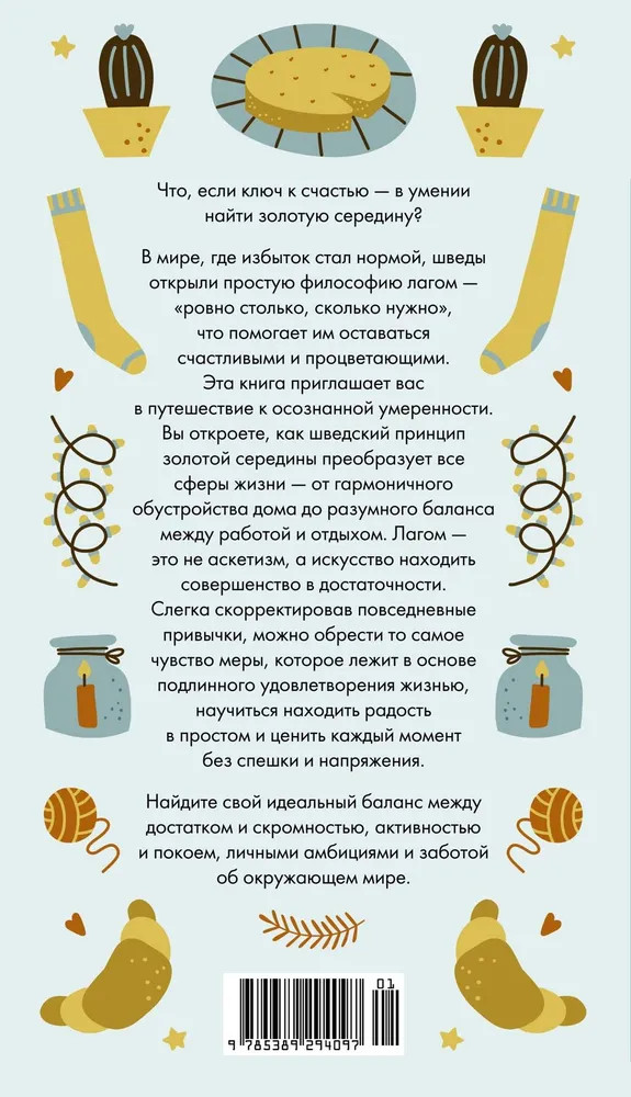 Серия: Коллекция «За 60 минут» Хотите обрести гармонию и счастье без радикальных перемен? Откройте шведский секрет лагом — философию «ровно столько, сколько нужно»! В мире, где всего слишком много — стресса, вещей, спешки, — шведы остаются счастливыми и процветающими благодаря простому принципу: умеренность без лишений, баланс без крайностей. С этой книгой вы научитесь гармонично обустраивать пространство, находить баланс между работой и отдыхом, а главное — ценить момент, а не гнаться за иллюзией счастья. Лагом — это не отказ, а искусство жить в достаточности. Слегка изменив привычки, вы обретете тот самый комфортный ритм, в котором есть место и радости, и покою.