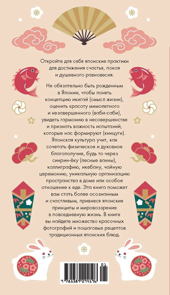 Серия: Коллекция «За 60 минут» Откройте для себя японские практики для достижения счастья, покоя и душевного равновесия! Не обязательно быть рожденным в Японии, чтобы понять концепцию икигай (смысл жизни), оценить красоту мимолетного и незавершенного (ваби-саби), увидеть гармонию в несовершенстве и признать важность испытаний, которые нас формируют (кинцуги). Японская культура учит, как сочетать физическое и духовное благополучие, будь то через синрин-ёку (лесные ванны), каллиграфию, икебану, чайную церемонию, уникальную организацию пространства в доме или особое отношение к еде. Эта книга с иллюстрациями поможет вам стать более осознанным и счастливым, привнеся японские принципы и мировоззрение в повседневную жизнь. В книге вы найдете множество красочных фотографий и пошаговых рецептов традиционных японских блюд.