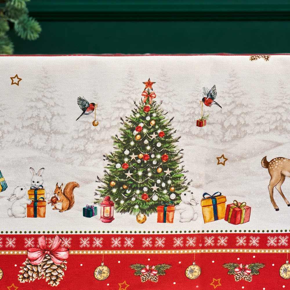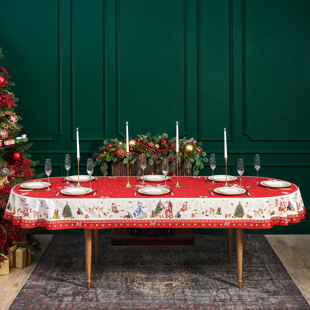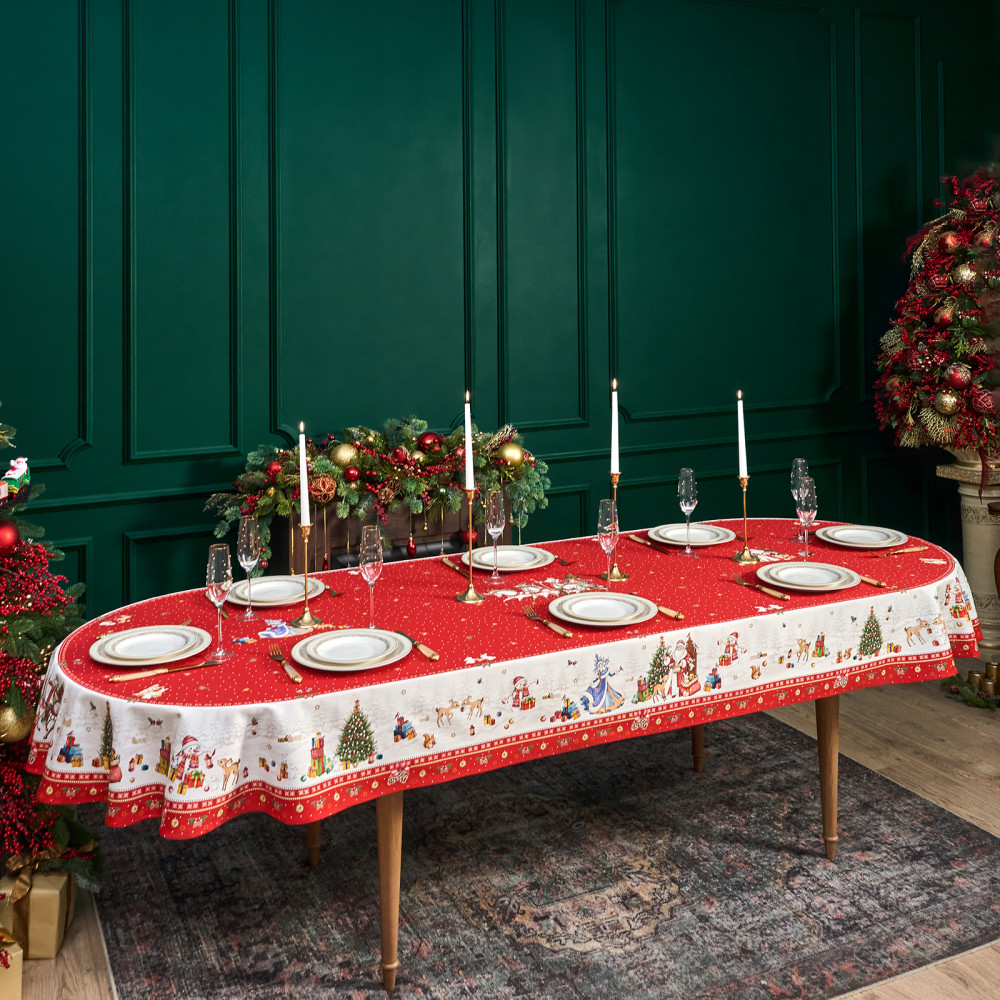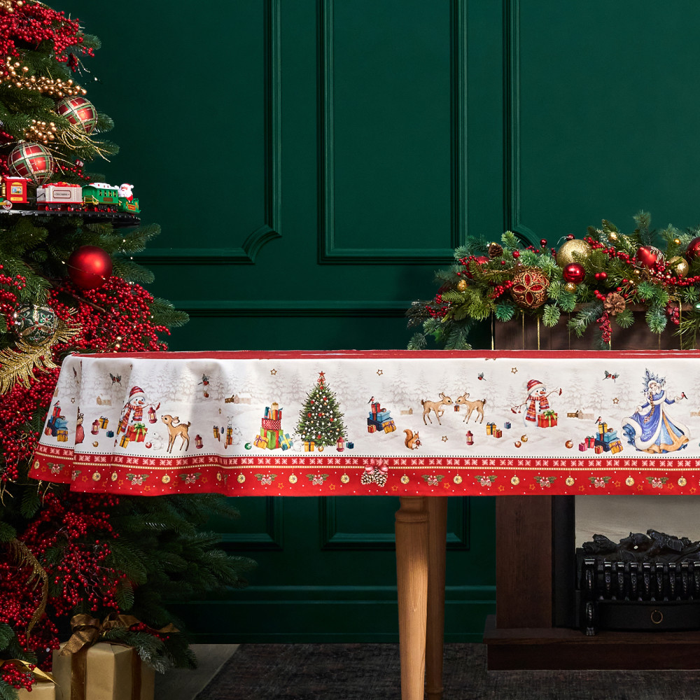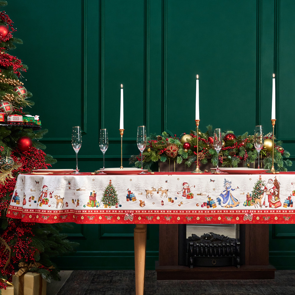 Новогодняя скатерть Lefard из коллекции «Щелкунчик» — идеальный акцент для сервировки большого праздничного стола. Яркий праздничный узор с еловыми ветками, игрушками и Щелкунчиком наполняет интерьер атмосферой настоящего рождественского чуда. Этот сказочный герой — символ волшебства, домашнего тепла и защиты. Такой текстиль не просто украшает стол, а создаёт ощущение уюта и предвкушения праздника, где каждый гость почувствует себя желанным.