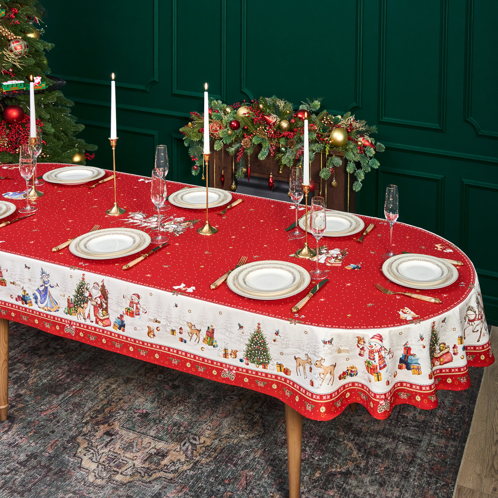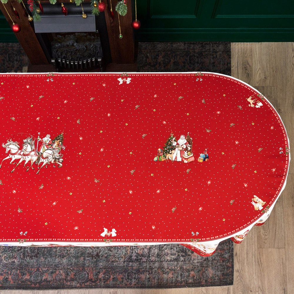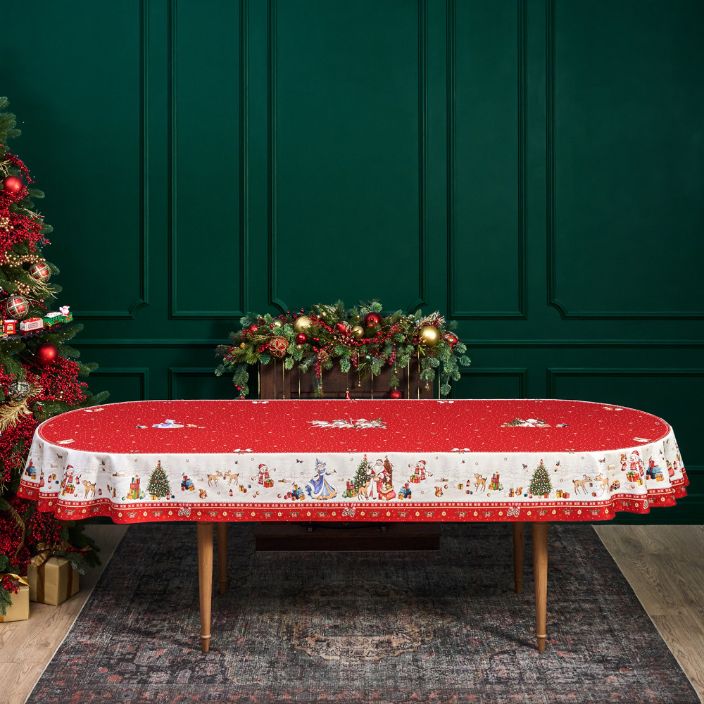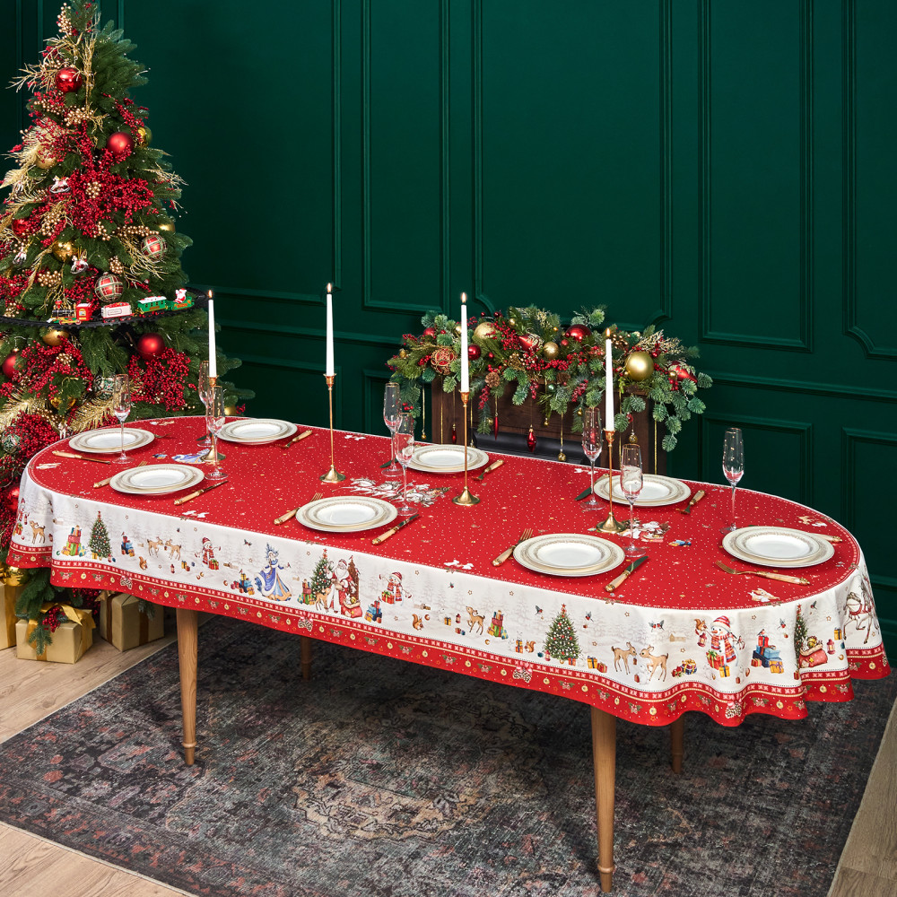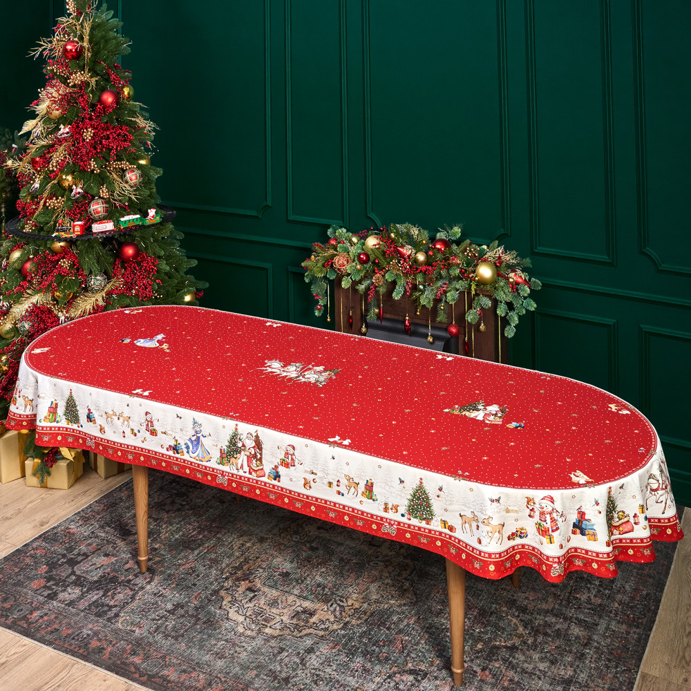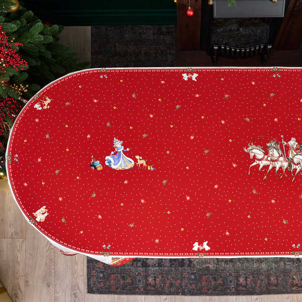 Новогодняя скатерть Lefard из коллекции «Щелкунчик» — идеальный акцент для сервировки большого праздничного стола. Яркий праздничный узор с еловыми ветками, игрушками и Щелкунчиком наполняет интерьер атмосферой настоящего рождественского чуда. Этот сказочный герой — символ волшебства, домашнего тепла и защиты. Такой текстиль не просто украшает стол, а создаёт ощущение уюта и предвкушения праздника, где каждый гость почувствует себя желанным.