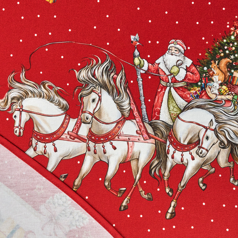 Скатерть выполнена из 100% хлопка с саржевым переплетением (твил). Ткань плотная — 190 г/м², не мнётся, не теряет форму, выдерживает стирку более 100 раз. Специальная водоотталкивающая пропитка защищает от пролитой жидкости, облегчая уход. Благодаря размеру 140×300 см, скатерть идеально подходит для длинных прямоугольных и овальных столов длиной более 2,5 метров. Это удачное решение, если вы ищете качественную скатерть 3 метра из плотной ткани с праздничным и выразительным дизайном. Цифровая печать по всему периметру обеспечивает чёткий и насыщенный рисунок с любой стороны стола. В коллекции представлены также текстильные аксессуары — кухонные полотенца и сервировочные салфетки с таким же зимним принтом. А для полной сервировки стол можно дополнить фарфоровой посудой Lefard с аналогичным дизайном. Соберите комплект в едином стиле — для эффектной подачи и создания праздничной атмосферы.