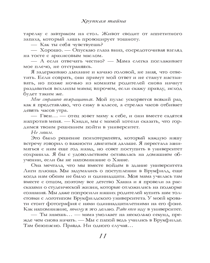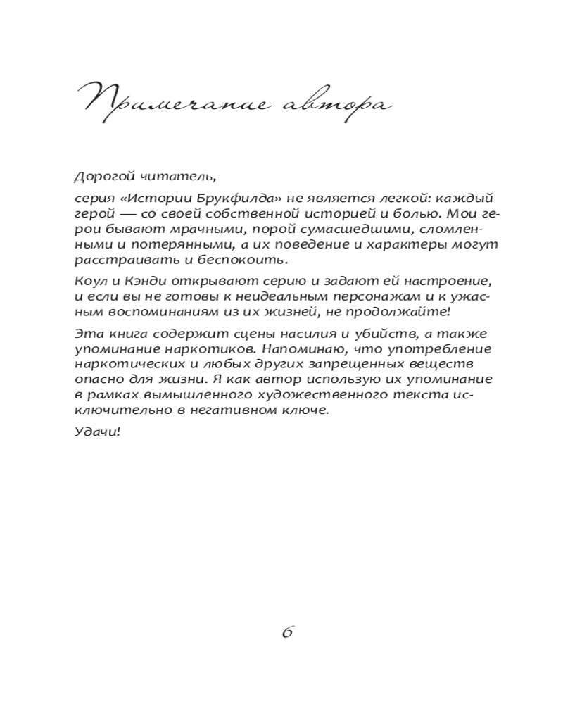💳 Оплатить за товар можно при получении 🇰🇿 Есть бесплатная доставка по Казахстану 🎁 Копите бонусы с каждой покупки Серия: Оттенки чувств Пять лет назад один человек уничтожил мою жизнь, лишив меня подруги и оставив после себя нескончаемое чувство вины и боязнь общения с людьми... И если бы не наша с Ханной мечта, я бы оставалась на домашнем обучении и никогда бы не зашла в здание Университета Брукфилда. Я планировала остаться незаметной, чтобы правда обо мне не раскрылась, но всё рушится в первый же день, когда на меня обращает внимание Коул Найт — капитан хоккейной команды и игрок, мечтающий попасть в НХЛ. |