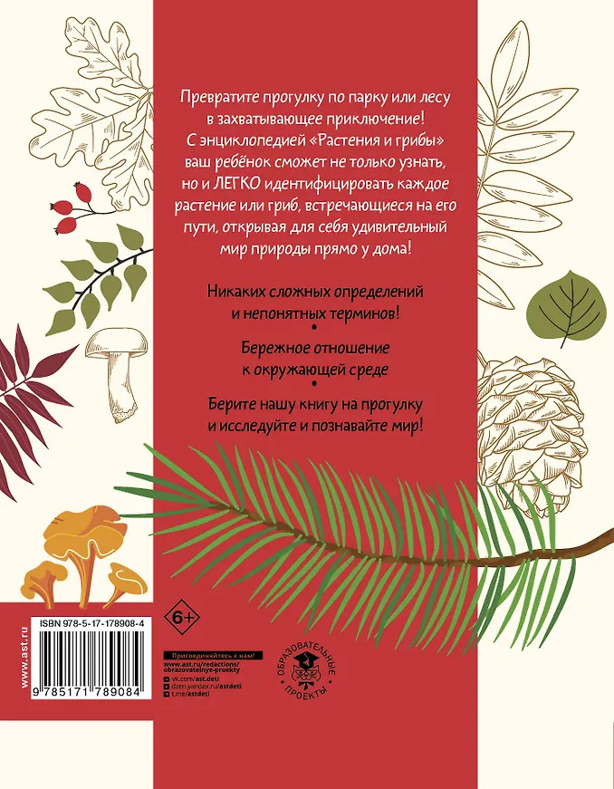 Серия: Школьные энциклопедии Школьная энциклопедия «Растения и грибы» содержит множество красочных фотографий, которые помогут детям легко идентифицировать различные виды растений и грибов, произрастающих в России. Наша книга — не просто справочник, а увлекательное путешествие в мир природы, которое поможет детям лучше понять окружающий нас мир и с уважением к нему относиться! Школьная энциклопедия является дополнением к учебникам по предмету «Окружающий мир» и соответствует ФОП, помогает расширить знания в изучении растений и грибов России. |
