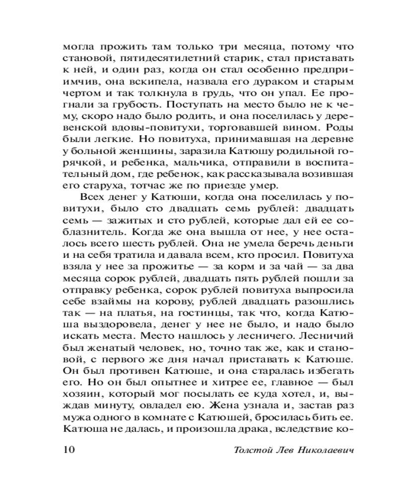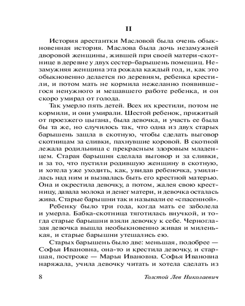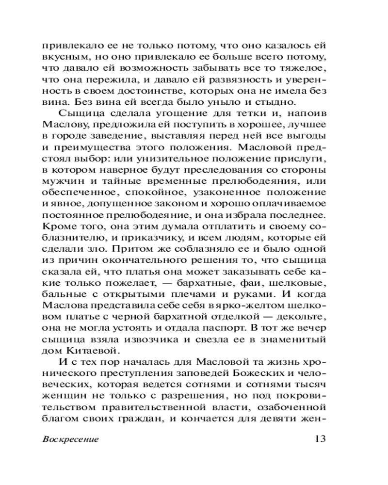 Серия: Эксклюзивная классика. Лучшее Роман, оказавший огромное влияние не только на отечественную, но и мировую культуру, экранизированный в нашей стране и за рубежом множество раз. Князь Нехлюдов, умный и пресыщенный эстет и сибарит, с ужасом узнает на суде в проститутке, обвиняемой в отравлении клиента, Катюшу Маслову – чистую, нежную девушку, которую он, со скуки, соблазнил когда-то – и с легкостью бросил, толкнув на дно жизни. Терзаемый муками совести, он готов на все – даже жениться на осужденной каторжанке и последовать за ней в Сибирь. Но удастся ли ему вымолить прощение? И примет ли Катюша жертву от мужчины, погубившего ее когда-то?.. |