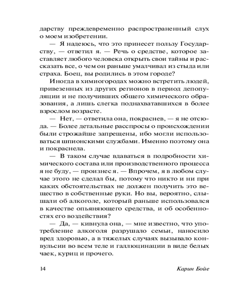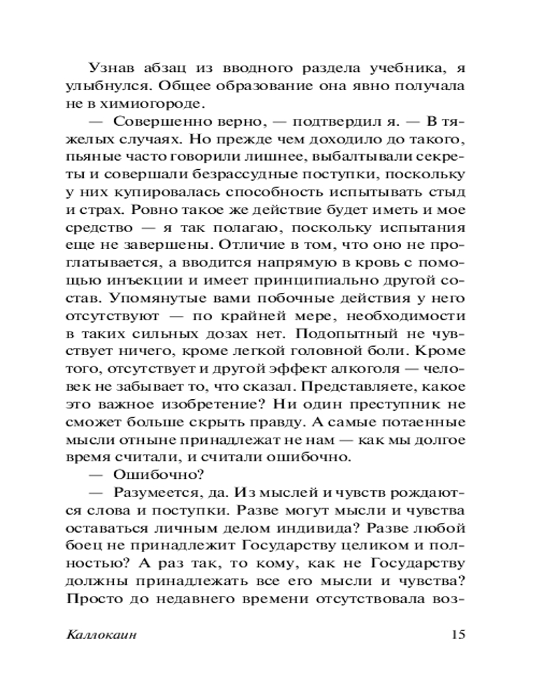Серия: Эксклюзивная классика. Лучшее В Мировом Государстве, в Химиогороде №4, где для осуществления тотального контроля за людьми ведется постоянное наблюдение и прослушка, а доносы являются долгом каждого порядочного бойца, живет талантливый химик Лео Калль. Он создает сыворотку правды под названием «каллокаин». Открытием заинтересовывается амбициозный шеф полиции Каррек, ведь благодаря препарату можно будет узнать преступные тайны и замыслы жителей Государства. Бойцу Каллю, истинному патриоту, предстоит многое узнать и об окружающих людях, и о самом себе... |