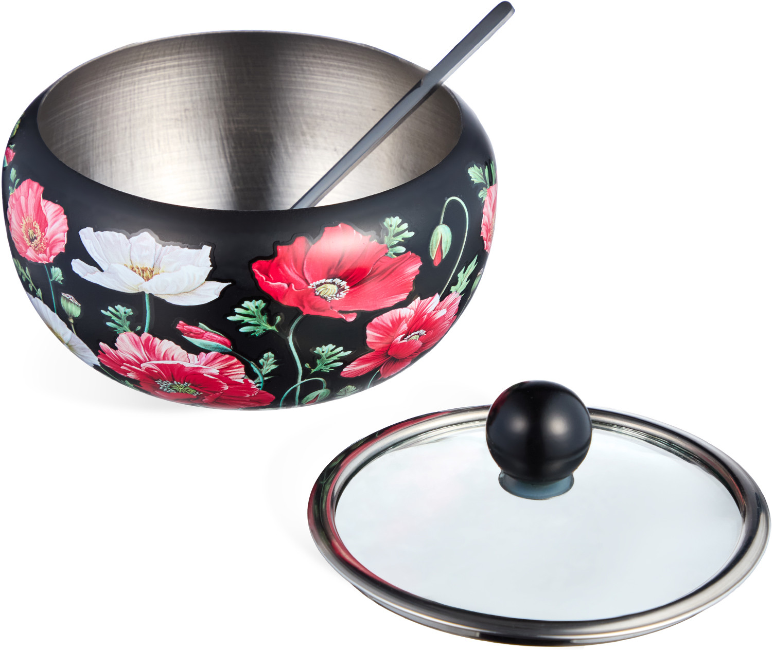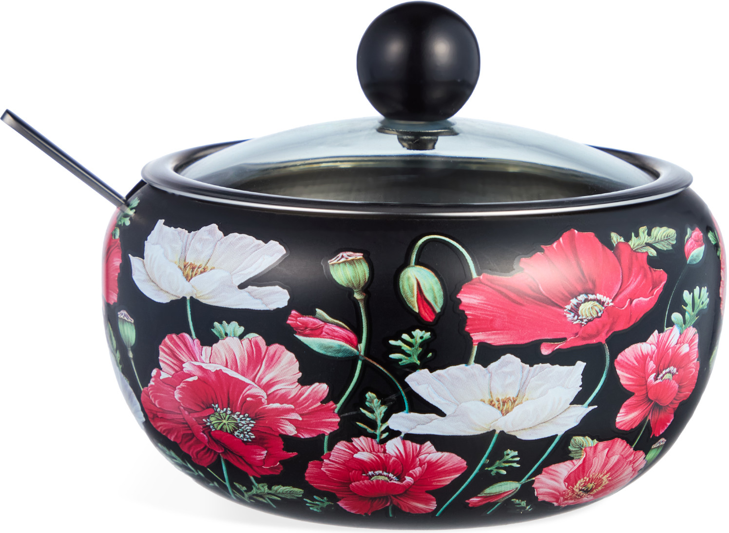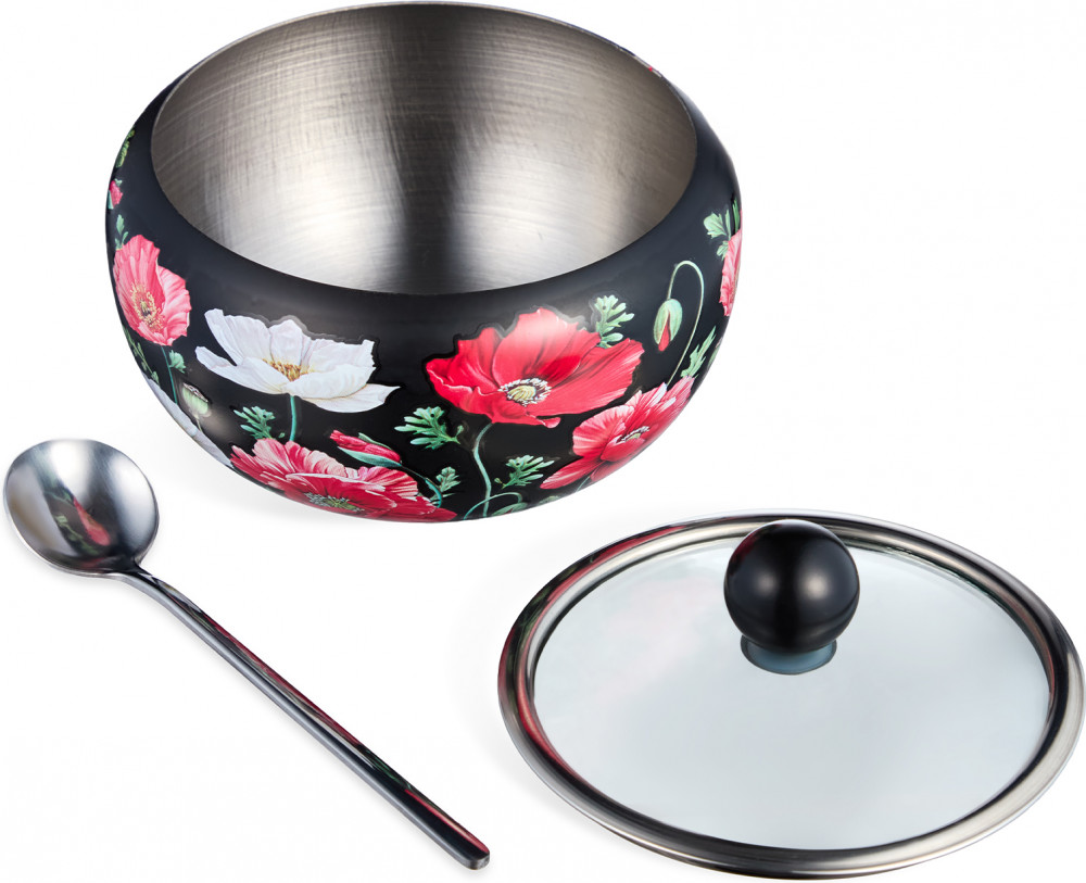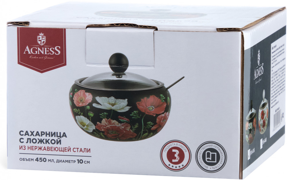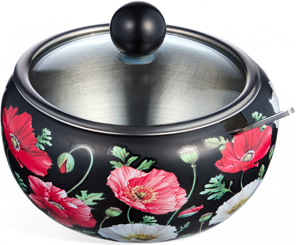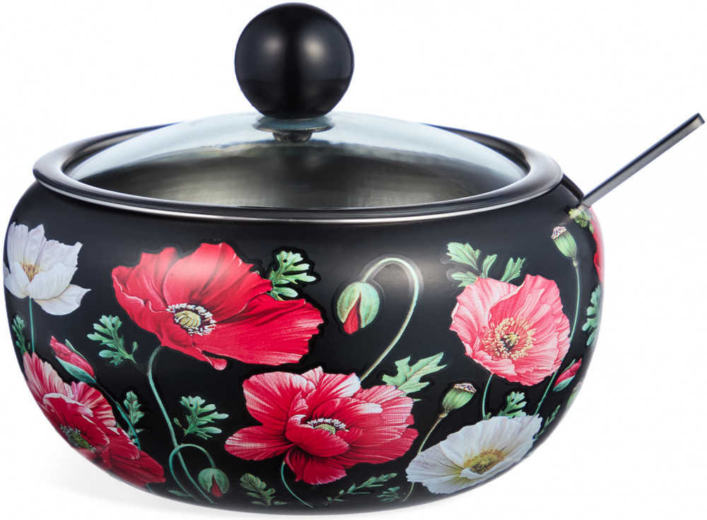 Agness Сахарница с крышкой и ложкой «Маки»