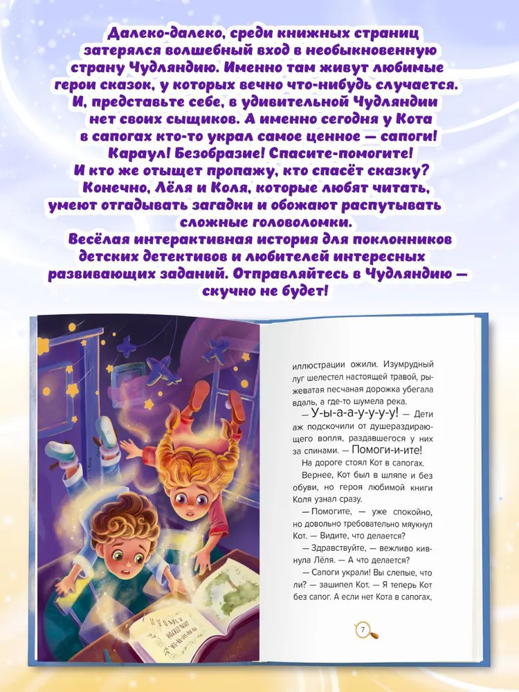 Серия: Детский детектив «Дело № 1. Кот без сапог» — это увлекательная и волшебная книга из серии «Детский сказочный детектив». Она познакомит юных читателей с приключениями брата и сестры — Лёли и Коли. Они попадают в таинственную страну Чудляндию, где каждое мгновение наполнено магией и загадками. Уже на первых страницах новая детективная история привлекает внимание — кот в сапогах остался без своих сапог! Ирина Гурина мастерски сочетает магию легендарных волшебных сказок с остроумием настоящего детективного расследования. Каждая история наполнена дружбой, юмором и важными уроками, которые помогут мальчикам и девочкам развивать логическое мышление, внимательность и любознательность. В этом книжном мире открываются новые горизонты современной книги для детей, где приключения сочетаются с загадками, увлекая юных читателей в сказочные истории о детях-героях. |